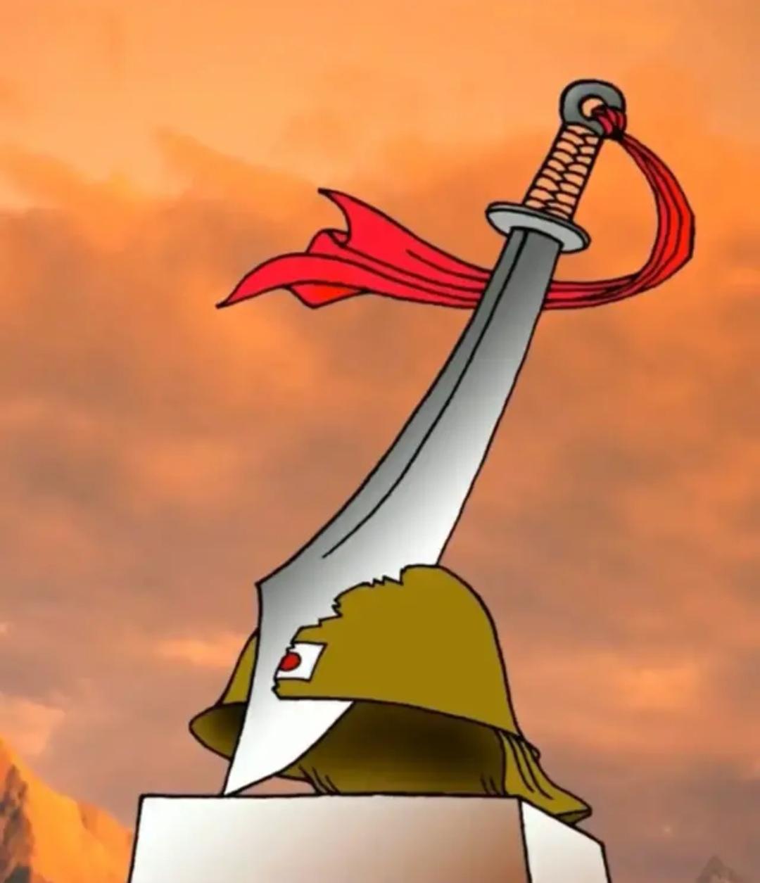 大刀向鬼子们的头上砍去! 啥也不说,干就完了! 多说无益,哪怕多说一个字都是