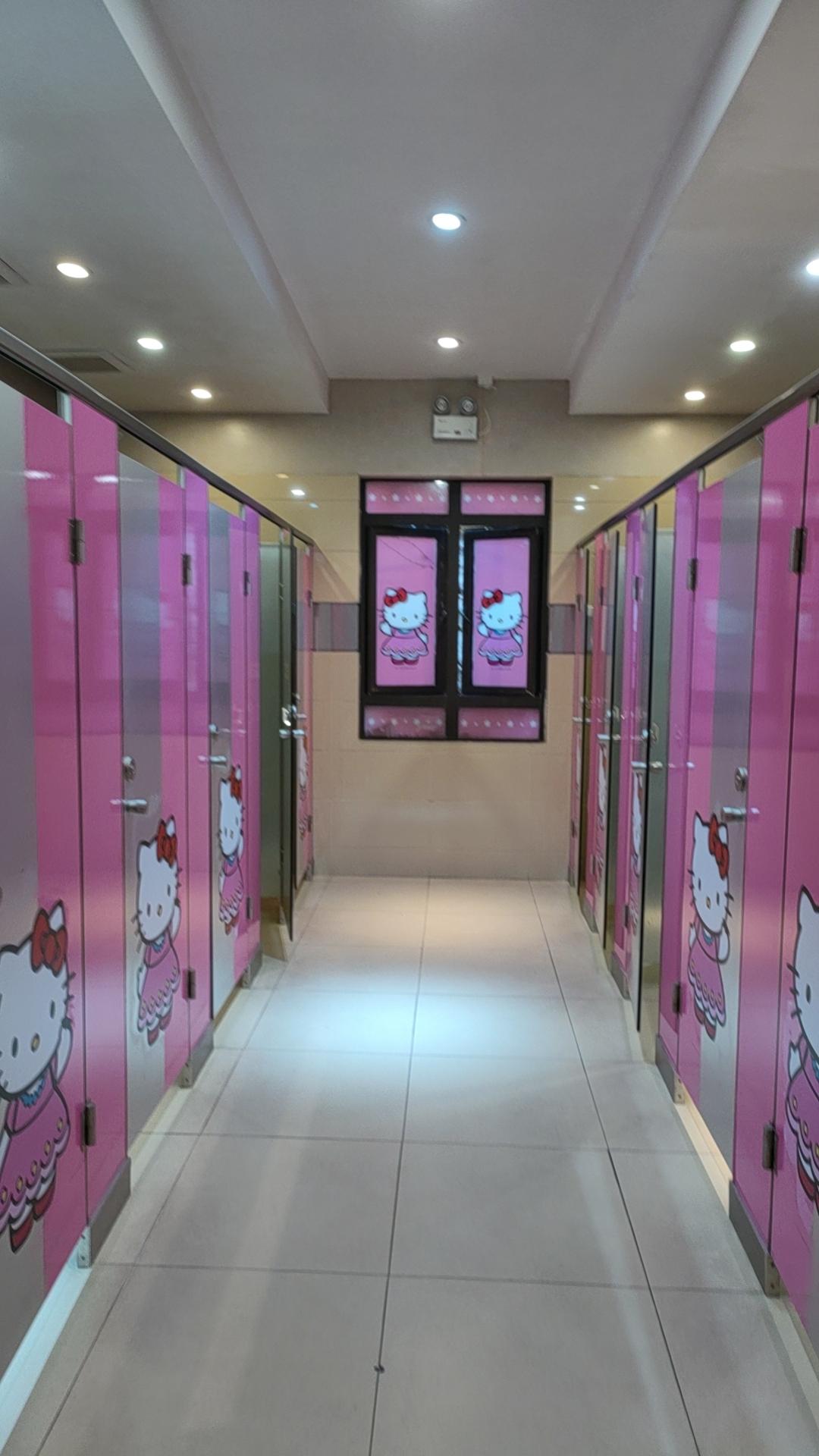 浙江安吉梦幻城堡乐园,这座城堡是孩子们喜欢样子,因为孩子在家里用积木搭的图案,最多的都是城堡形状,乐园里面都是粉色的KT猫,大家看,就连厕所里都是KT猫,粉粉的,孩子们喜欢,大人们开心