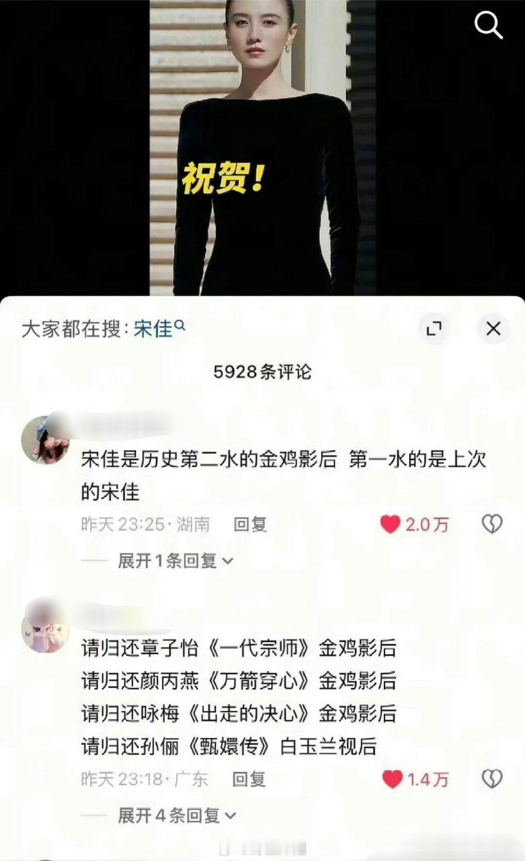 对于宋佳两次获得金鸡奖最佳女主角这一奖项,网友好像颇有异议啊,对这个结果好像都不该满意的样子,觉得应该是别人来拿这个奖