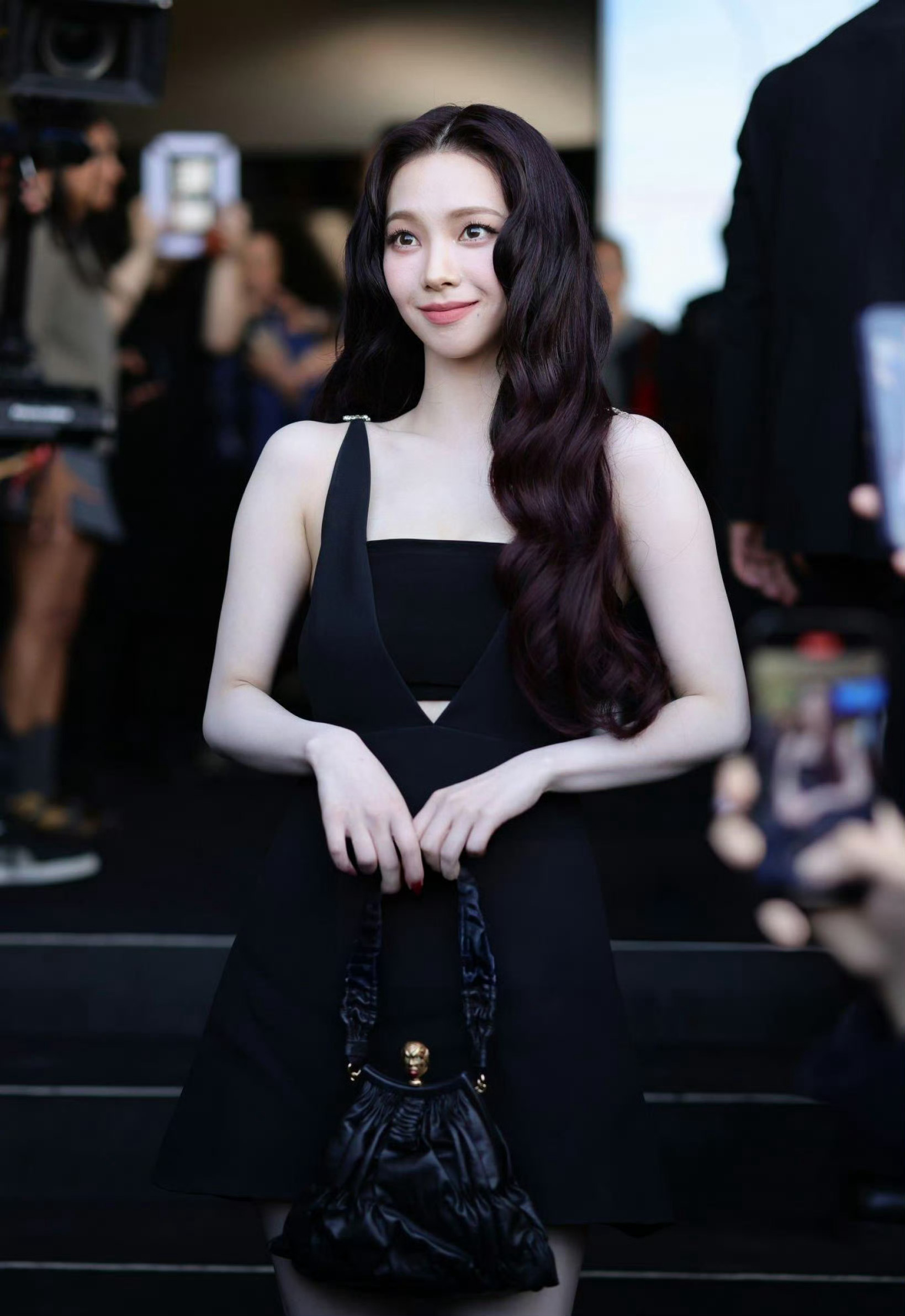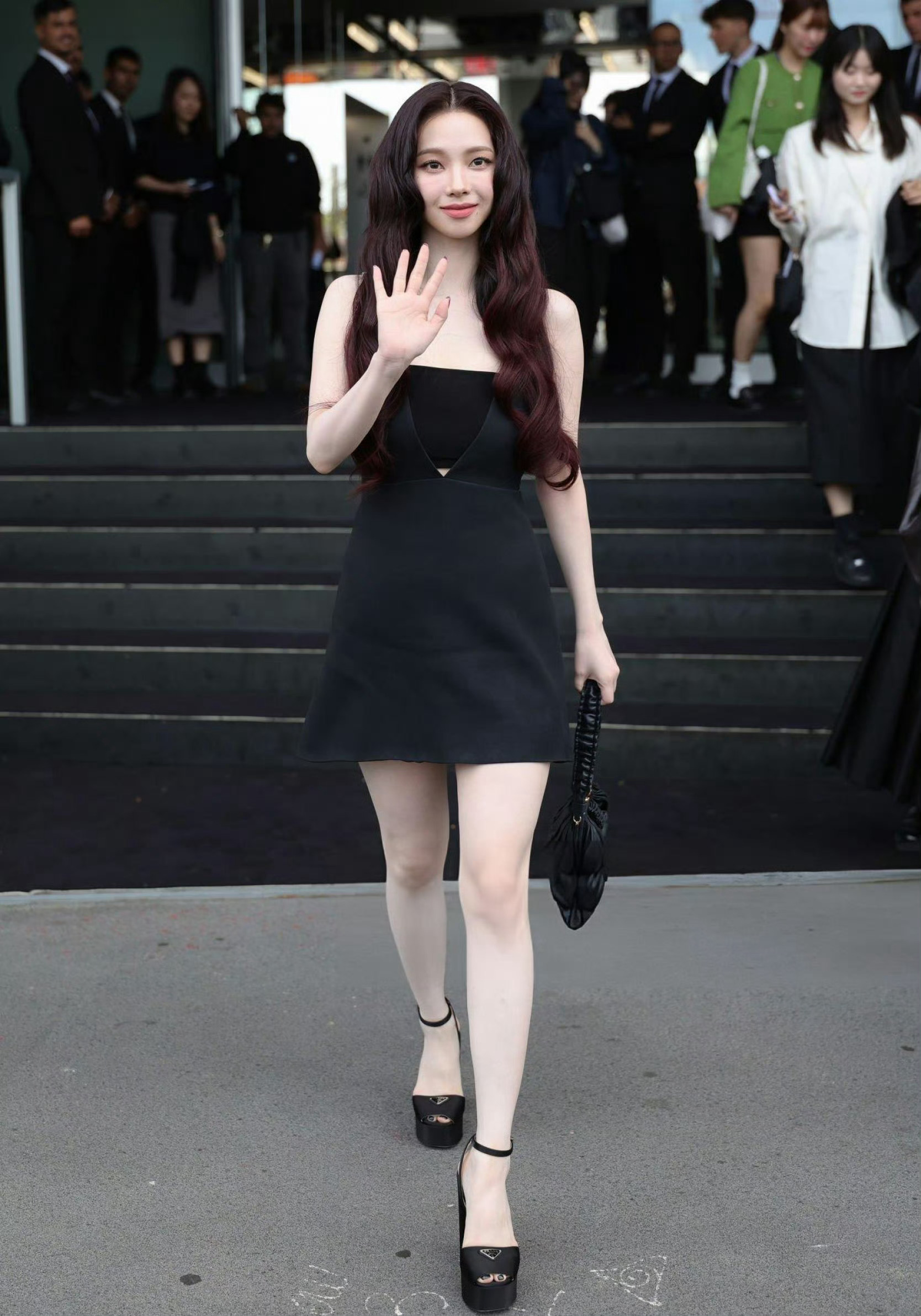 柳智敏米兰品牌活动,黑色裙装好迷人的欧尼