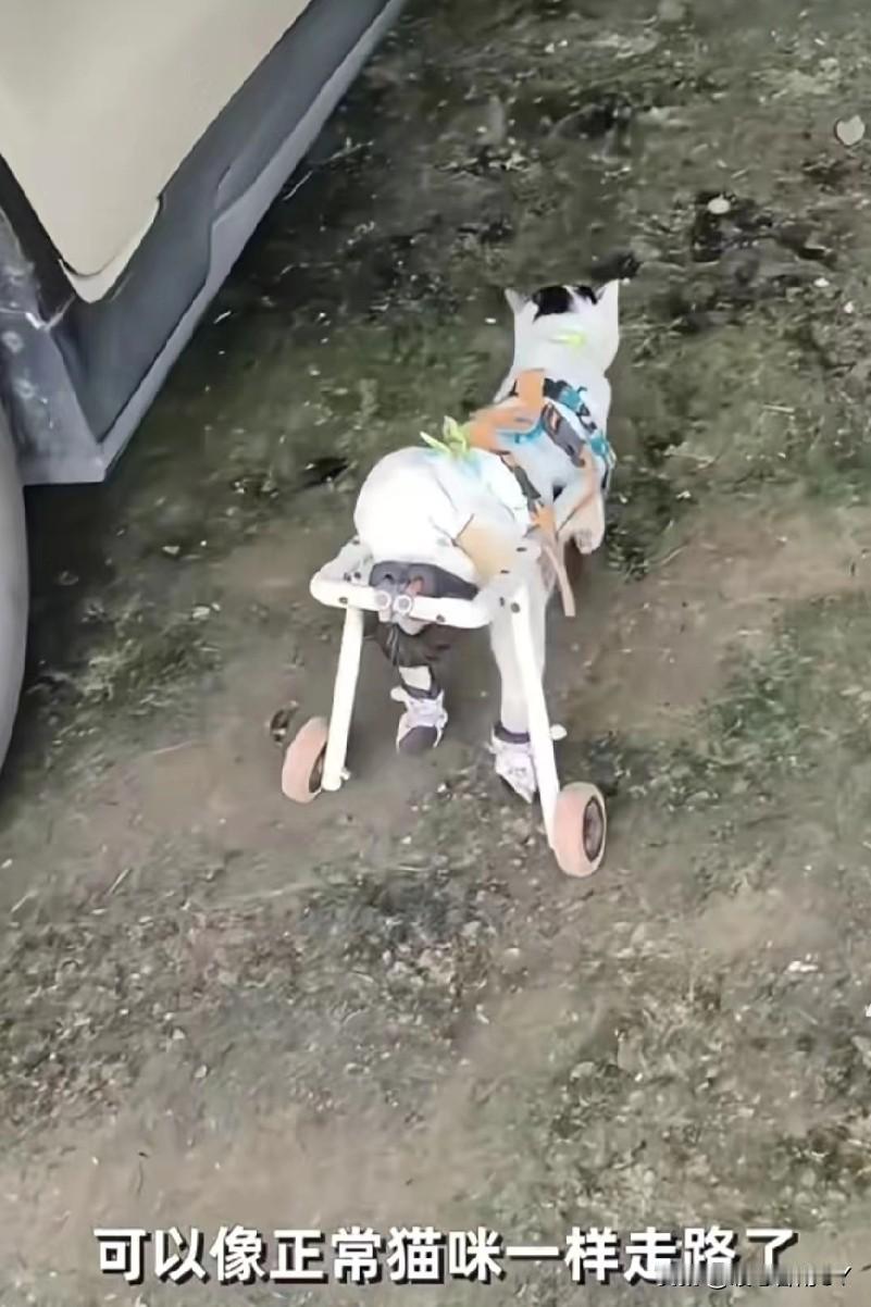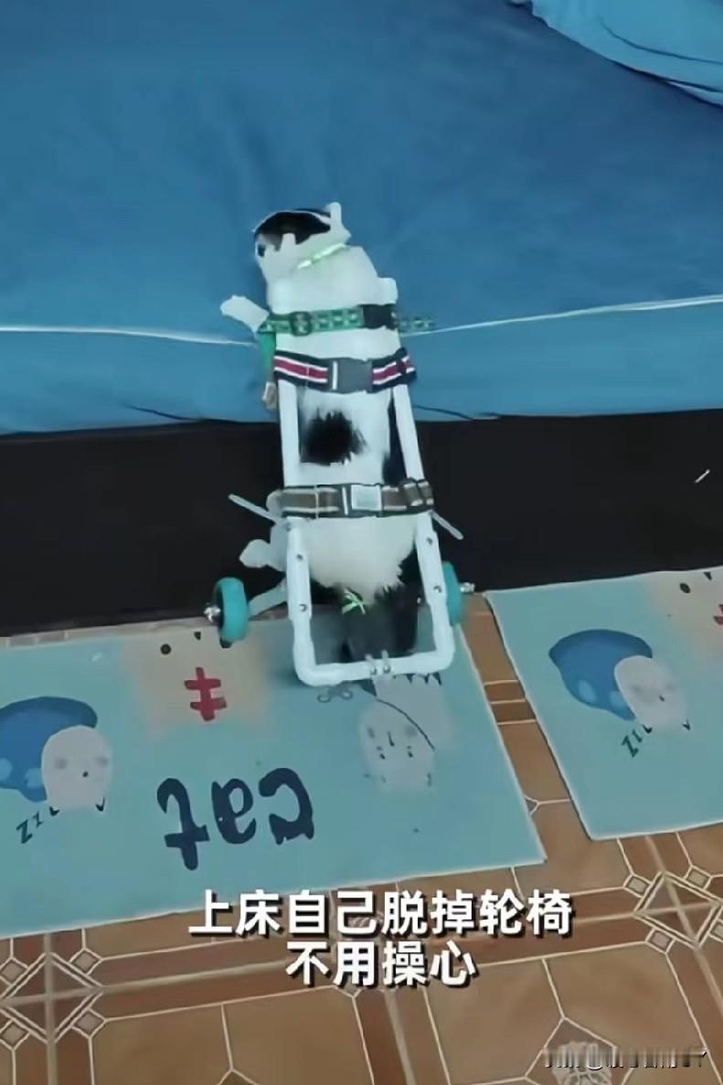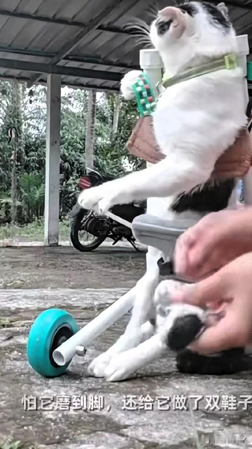 爱:让折翼的它重新奔跑! 江苏有只后肢瘫痪的猫咪,因先天发育问题无法正常行走,却在主人的爱里重获“新生”。 主人为它定制行走轮椅,缝制了防磨小鞋子,耐心地引导它去适应。 有了“专属座驾”后,它告别了“寸步难行”的日子,如今不仅能自由穿梭、爬树玩耍,玩累了还会自己回家,脱轮椅上床休息。 从无法迈步到自在奔跑,是主人的耐心与创意,让它的世界不再受限。 这双向奔赴的温暖,用实际行动证明:每个生命都值得被善待,爱能跨越一切阻碍,折翼的生命也能重新奔跑~