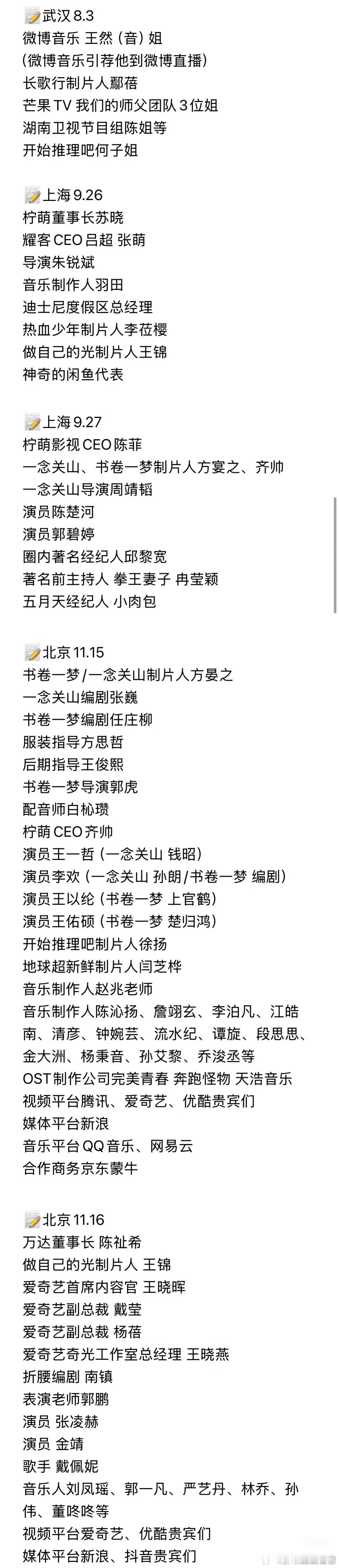 网友整理了刘宇宁今年巡回演唱会部分场次出席的业内名单(不完全统计)真是🐮啊独一无二的顶刘