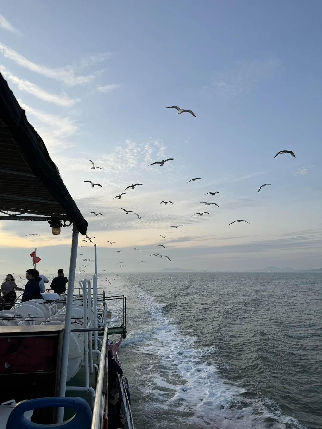 PS.在去长岛的船上,到了二层,真的是可以看到海鸥,追着穿飞