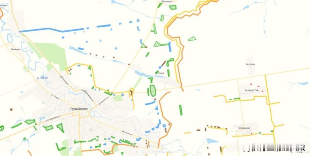 配图是乌军构筑的古利亚伊波列东部和东北部的野外防御工事。 请注意,亚布洛科沃已