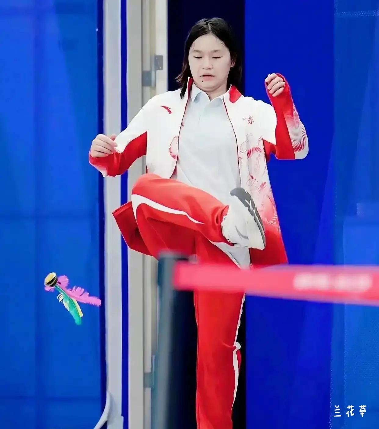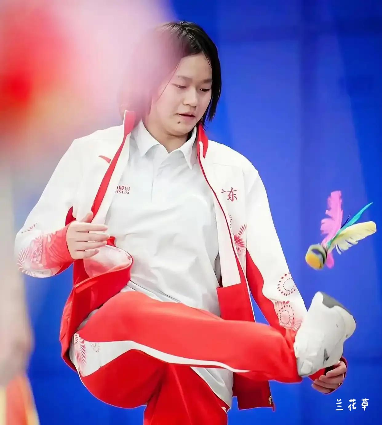 搞笑全红婵,踢键子的动作都能火出圈。 有网友截图放大她的面部表情后评论:“原来全妹每个细胞都在用力! ” 这种笨拙的真诚,与她在跳水台上的沉稳判若两人。 婵宝快乐,欢乐婵宝。