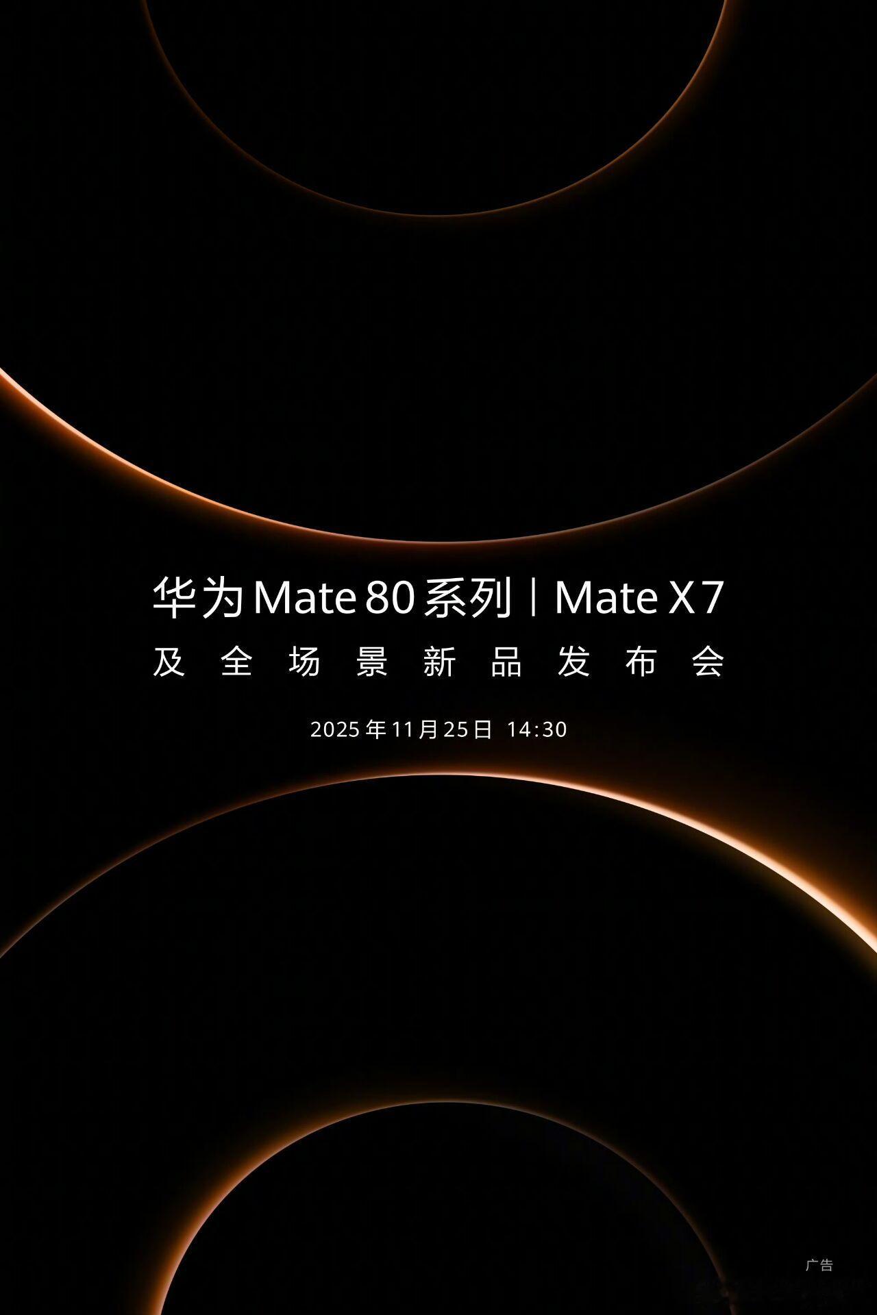 华为Mate 80系列 | Mate X7及全场景新品发布会,11月25日14:30,敬请期待! 全新的设计,强大的性能。你准备好了吗?