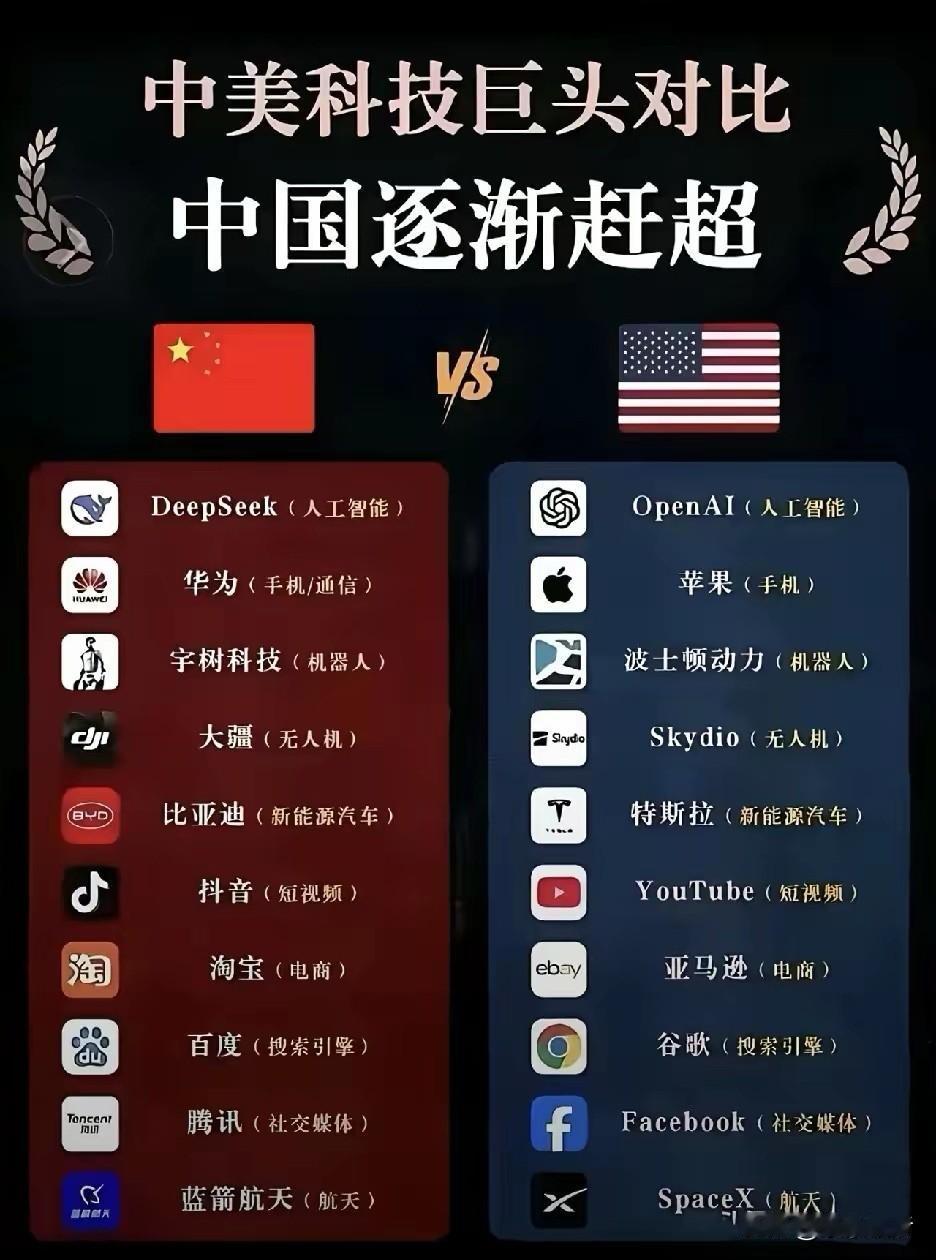 两强科技企业对比发现,你有我也有,你在前面走,我在后面跑,再假以时日,跟跑变并跑,并跑一定会成为领跑,难怪现在他们有危机感!加油吧!现在的跟跑,将来的领跑!