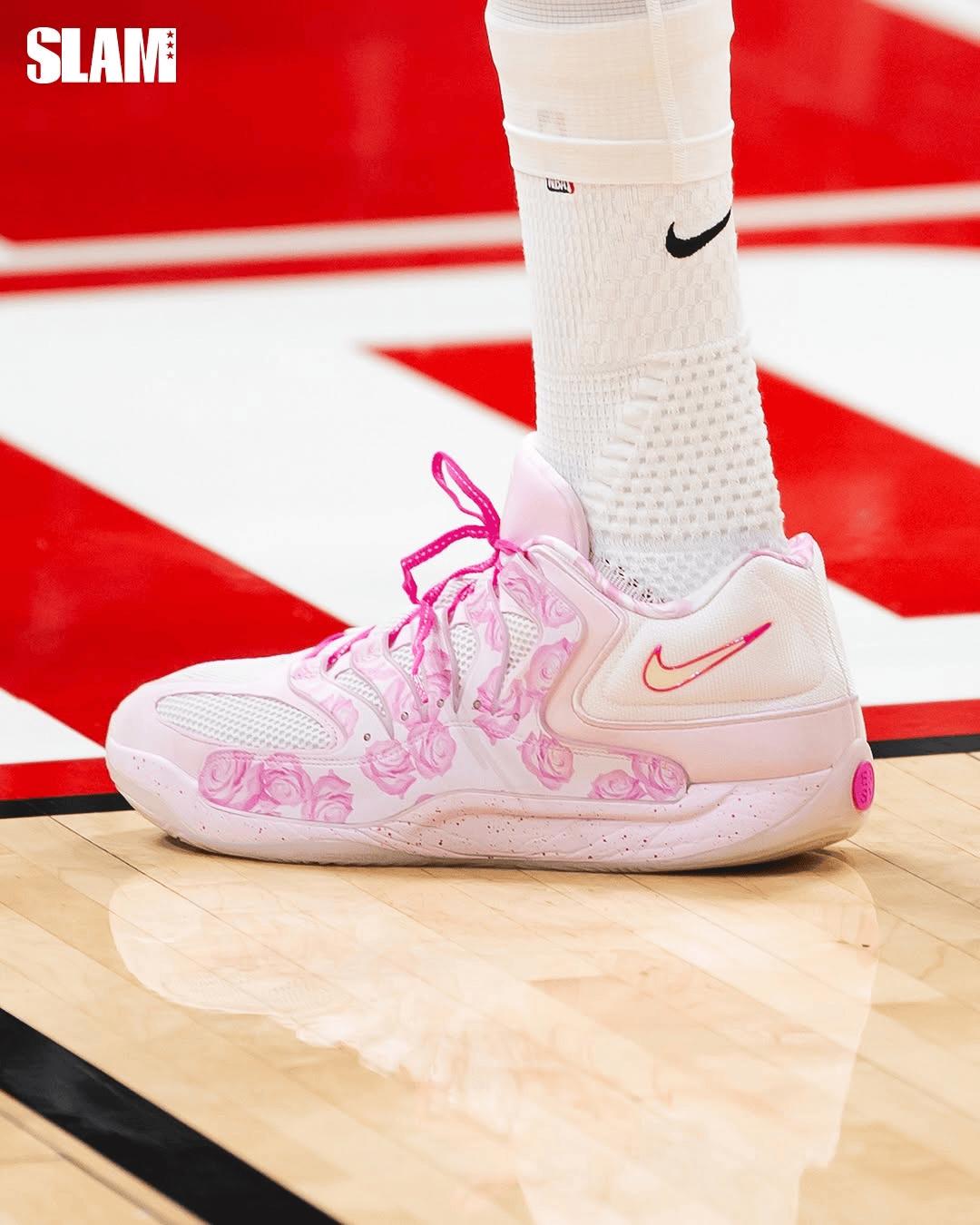 镰刀挥舞!杜兰特穿着抗乳腺癌配色KD18,砍下35分5板6助 11月17日讯 今日NBA常规赛117-113战胜。 本场比赛,火箭队球员凯文-杜兰特出场45分钟,投篮24中13,其中三分球8中2,罚球7中7,得到35分5篮板6助攻1盖帽。 比赛中,杜兰特上脚抗乳腺癌配色Nike KD18“Aunt Pearl”。