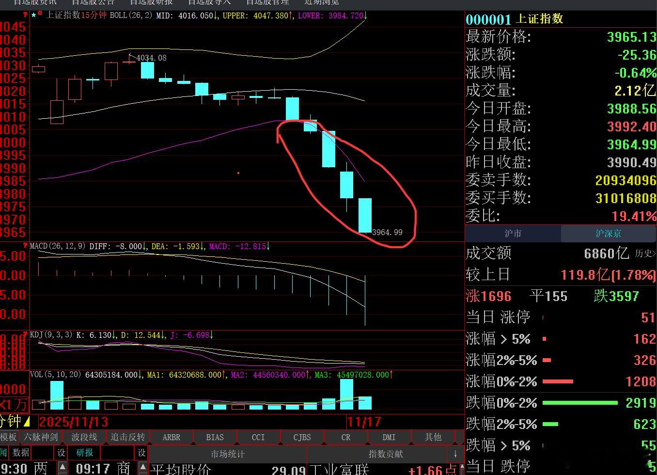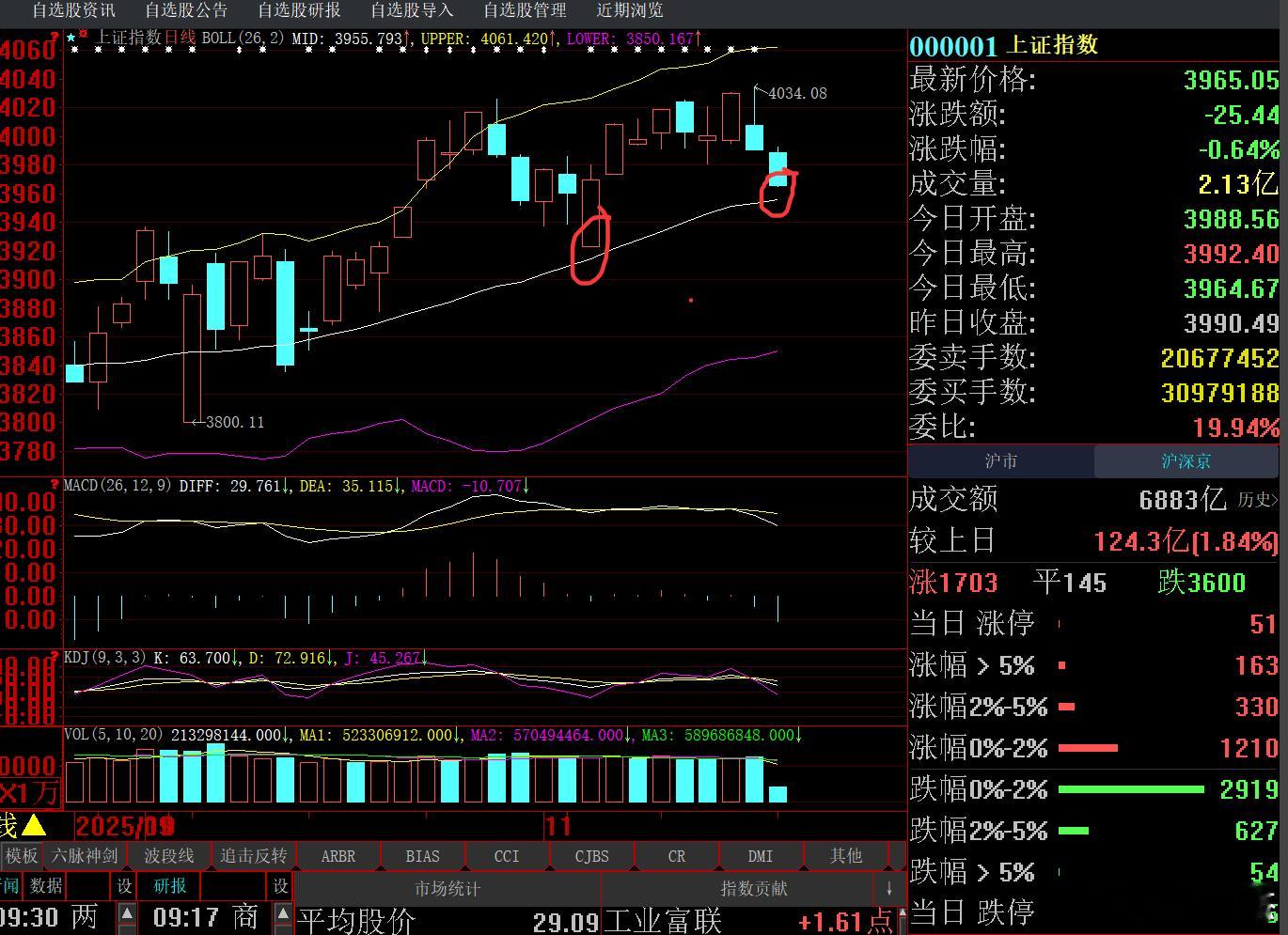 大盘单纯技术面来讲,短线已经超卖了,布林中轨线支撑3955点,跌破中轨线就不好玩了。