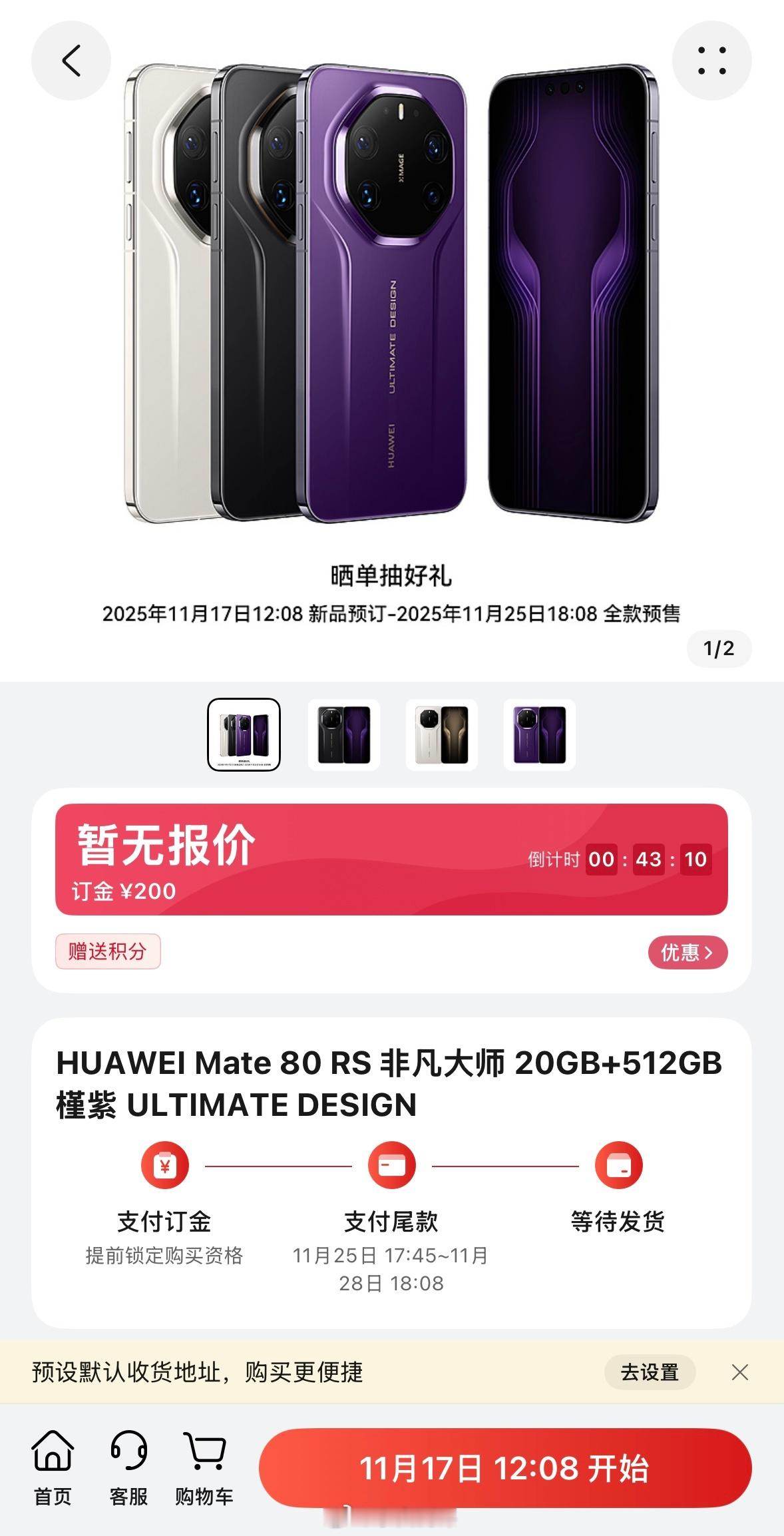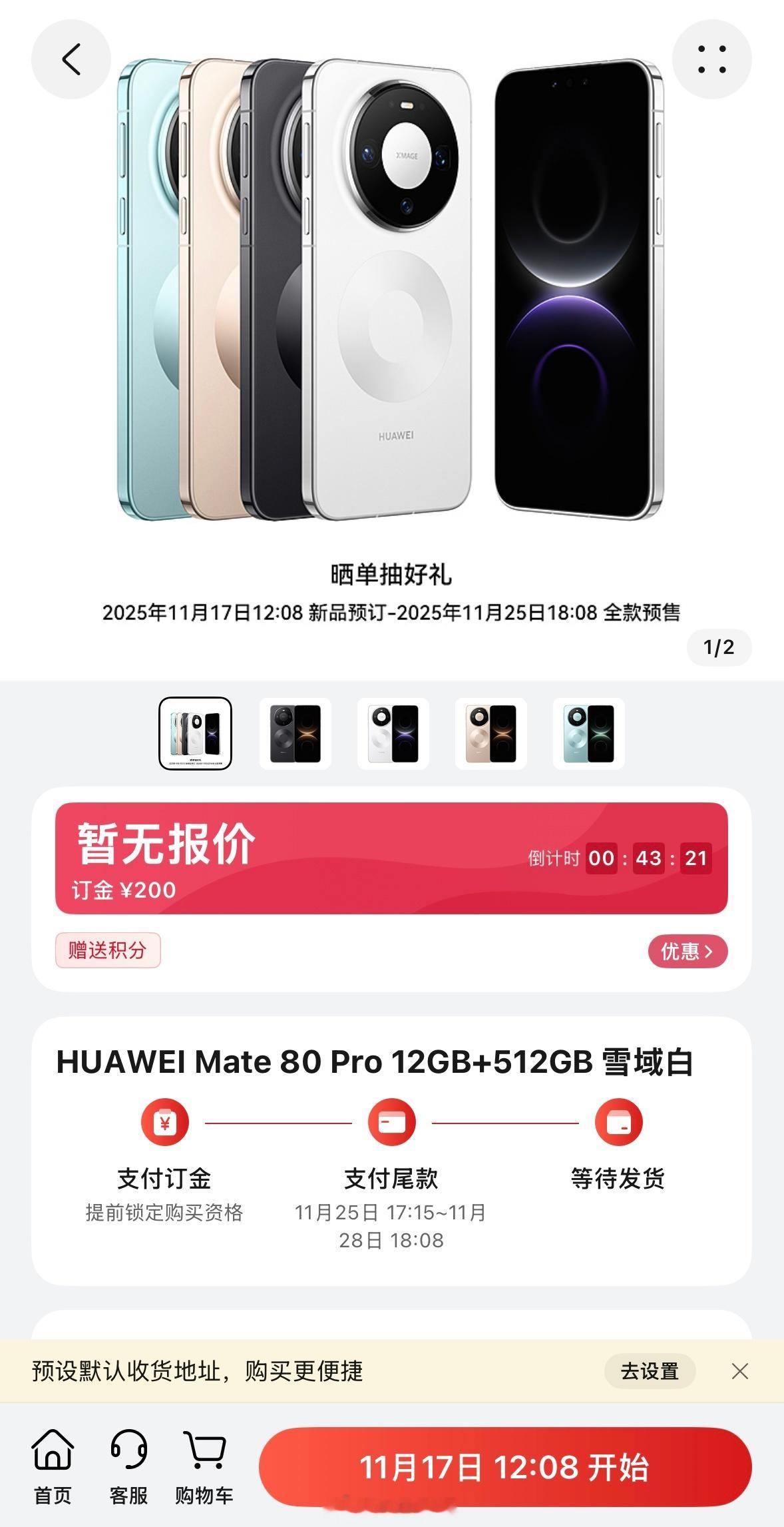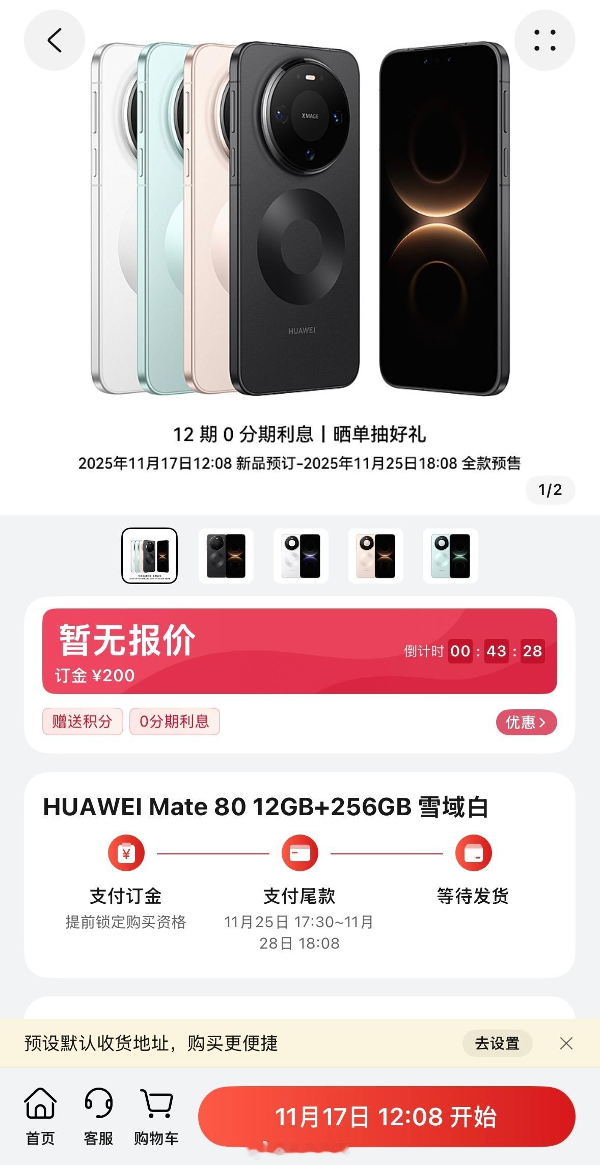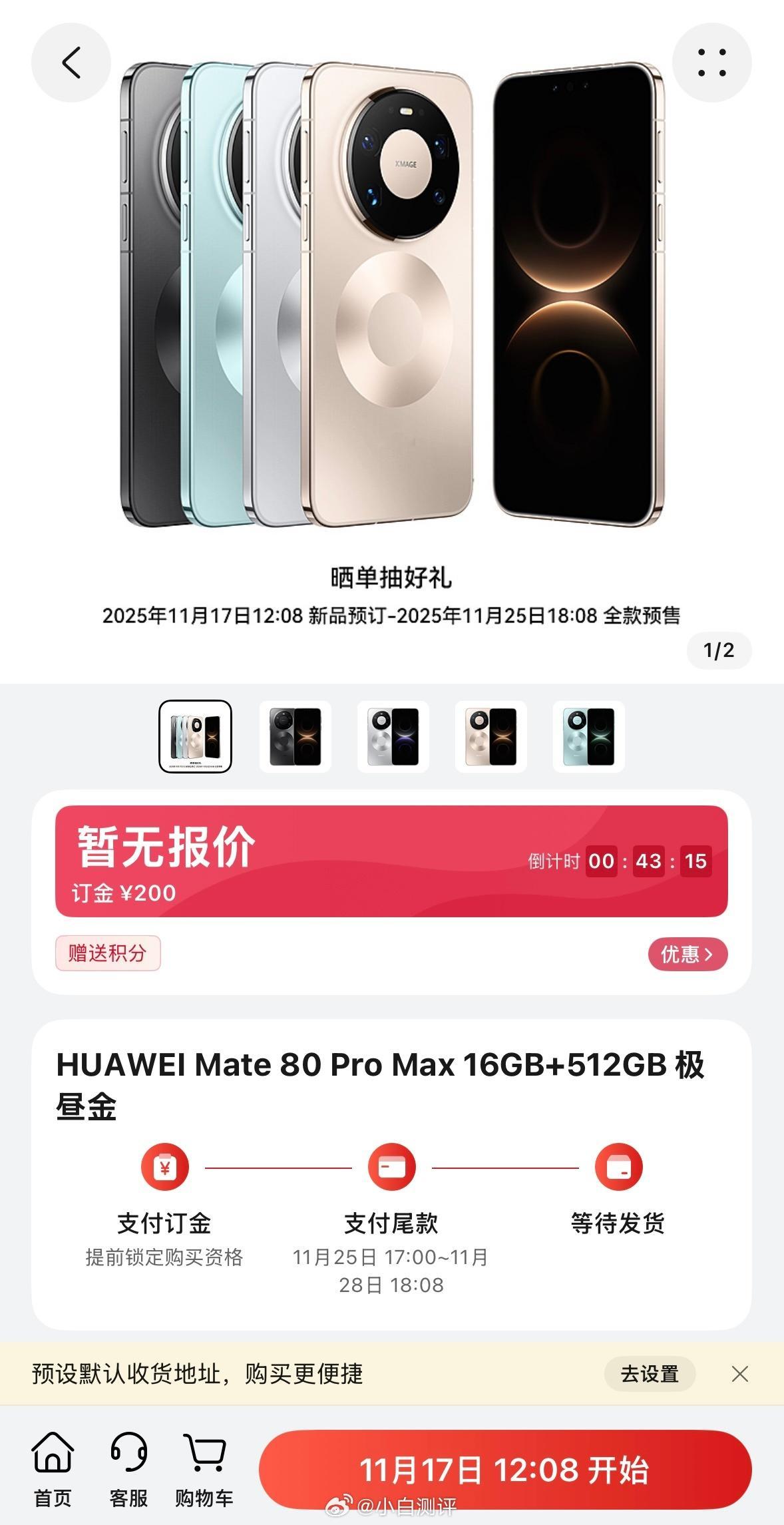 华为Mate80全系配色公布 选哪个版本📱华为Mate 80:曜石黑/雪域白/晨曦金/云杉绿4个颜色,12+256GB/12+512GB/16+512GB三个存储版本可选;📱华为Mate 80 Pro:曜石黑/雪域白/晨曦金/云杉绿4个颜色,12+256GB/12+512GB/16+512GB/16GB+1TB四个存储版本可选;📱华为Mate 80 Pro Max:极夜黑/极地银/极昼金/极光青4个颜色,16+512GB/16GB+1TB两个存储版本可选;📱华为Mate 80 RS非凡大师:玄黑/皓白/槿紫3个颜色,20GB+512GB/20GB+1TB两个存储版本可选。今天中午12:08预订(200元订金),11月25日18:08全款预售。