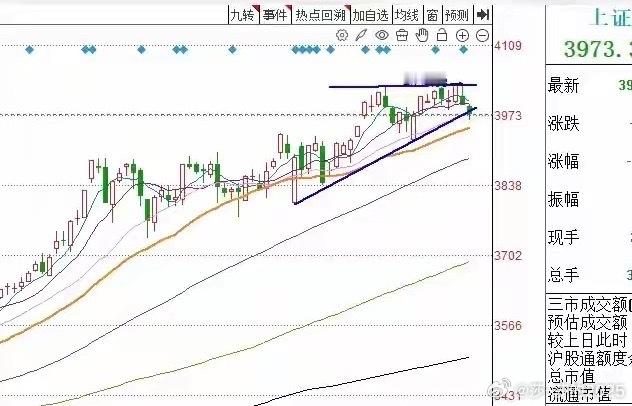 午评: A股早盘技术面有变,短线方向或已出来,大家来听听怎么说?上午收盘了,三大指数全线调整。截至上午收盘,上证指数跌0.43%,深证成指跌0.35%,创业板指跌0.8%。截至上午收盘,三市的成交额1.28万亿,比上一个交易日温和放量314亿截止上午收盘,三市上涨的家数2337家,下跌的家数2964家。今天上午的走势是符合我的预判的。从今天上午市场的走势来看,三大指数的技术面都已经出现了关键的变化。大家请看上证指数日线图。从图一上证指数日线图,大家可以发现,近期的上升三角形下轨支撑位已经被跌破。大家再请看图二创业板指日线图,创业板指日线图来看,创业板三角形下轨也已经跌破。而且从创业板的角度来看,我们可以发现,5日、10日、20日,30日多周期均线已经开始拐头向下,5日10日出现了明显的死叉向下走势。而且指数已经运行在5日、10日、20日30日4条均线的下方。从深圳成指的角度来观察,也能够得出同样的结论。所以基本上我们可以发现,从今天上午开始,整个大盘的走势已经有了明显的技术面的变化。那么面对这种变化,接下来怎么看呢?莎莎认为还是维持我在上周就和大家讲到的,整体来说,市场指数连续大幅上涨之后,目前需要一次技术性的调整。而技术性调整短期的目标位,上证指数,我们先看3922点的支撑。而且今天早盘我们发现港股恒生指数也出现了调整的情况。情况下,A股下午想要逆转,独立走强,难度稍微有点大。并且根据莎莎观察,接下来美股继续调整的概率也是偏大的。所以种种因素综合的情况下,莎莎个人认为超短线来说,还是需要做一定的防守策略,整体多看少动。这里值得注意的是,早盘主力尝试在半导体封装等硬科技方向发动反弹行情。并且白酒板块出现了明显的跷跷板效应。而从上午的走势来看硬科技方向冲高回落,而白酒板块出现了探底回升的走势。我们要注意这种变化。这种变化说明也许白酒板块底部已经夯实。而半导体等硬科技方向,可能短线的震荡回落还没有结束。中午时间的关系莎莎就和大家说到这里,大家点赞,评论➕关注就是对莎莎这个纯技术派的最大支持。