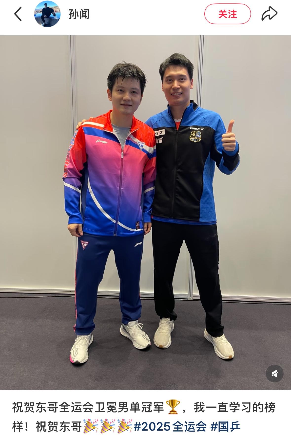 全运会团体小组赛 北京队VS江苏 王楚钦3:1孙闻 让一追三 逆转取胜 第一盘, 马龙/黄友政3:2曹彦涛/陈垣宇 8:11,11:7,11:6,4:11,11:9 第二盘,王楚钦3:1孙闻 6:11,11:3,11:5,11:8 孙闻一上来就拼着打王楚钦, 但王楚钦的打法就是不拼你硬拼, 在速度与力量的交锋中, 王楚钦不落下风, 但王楚钦的质量更高一筹, 恭喜王楚钦为北京队贡献一分!