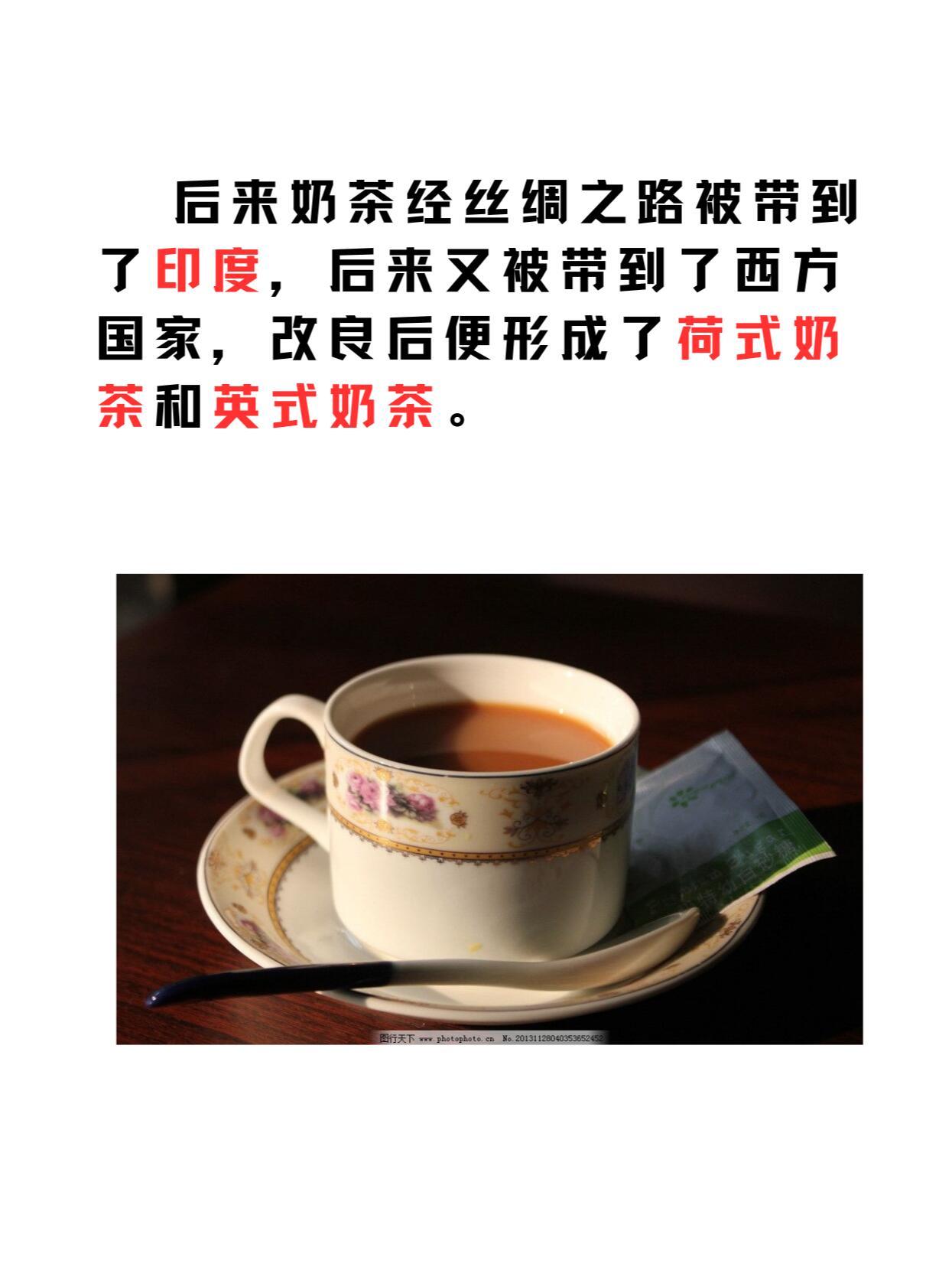 奶茶的发源地不是中国台湾,而是中国西藏,当地人首次把奶和茶融合在一起,就这样最早的奶茶诞生了。后来奶茶经丝绸之路被带到了印度,后来又被带到了西方国家,改良后便形成了荷式奶茶和英式奶茶。而到了近代,荷式奶茶随着荷兰的殖民扩张被带到了中国台湾,经本土化改良后,就成为了现在众人皆知的“珍珠奶茶”