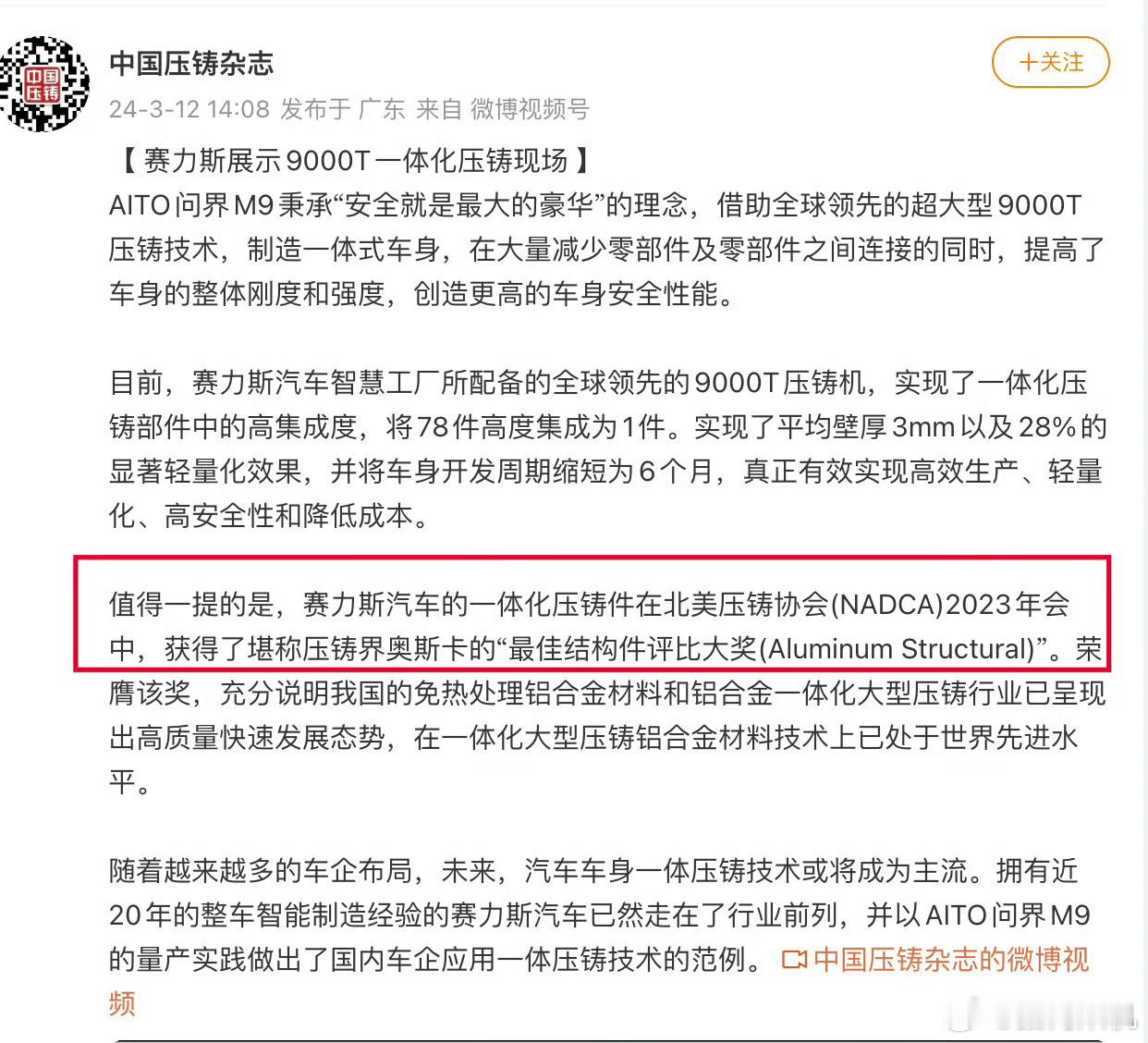 北美压铸协会的奖项,是压铸界奥斯卡奖