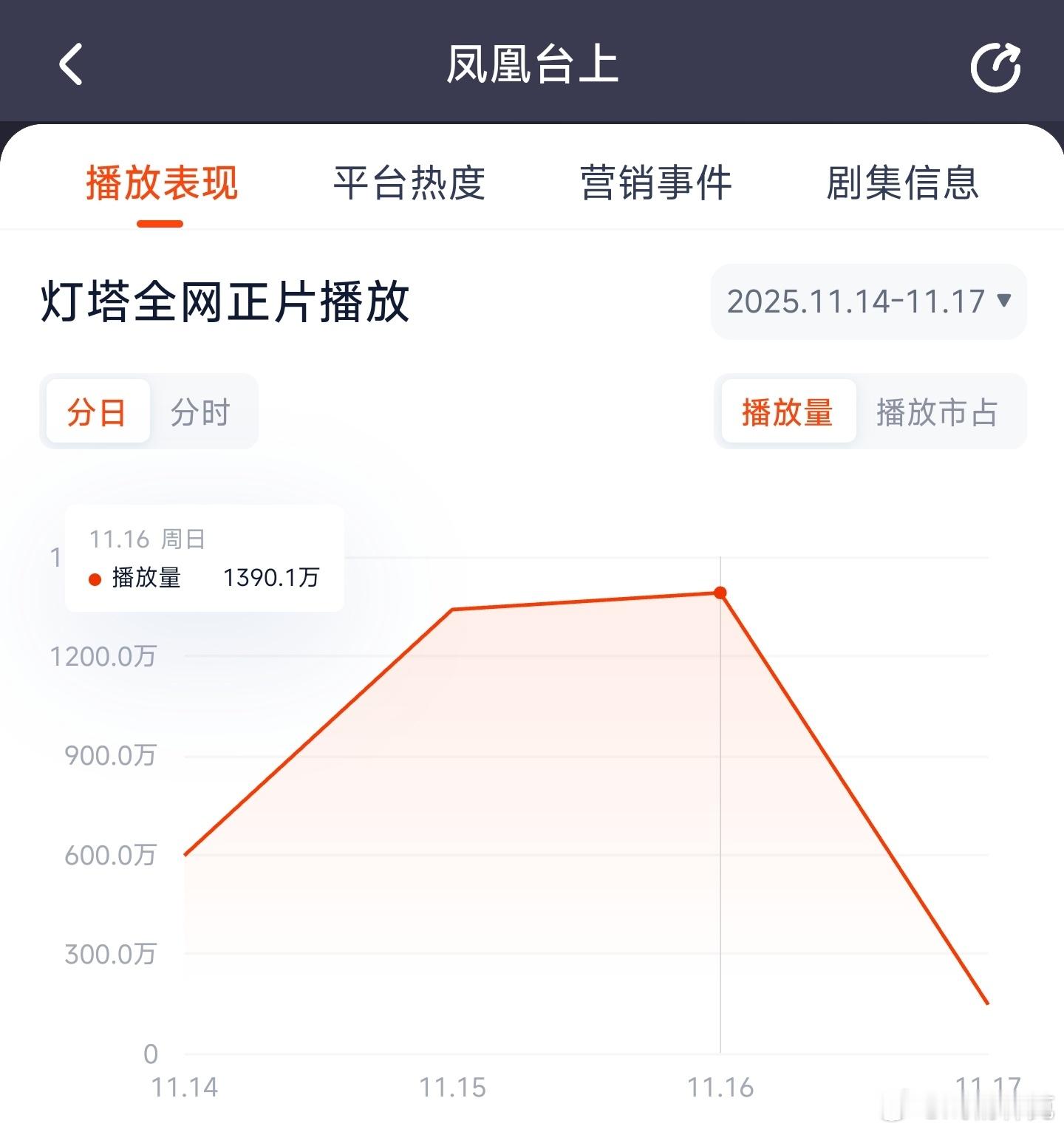 任嘉伦彭小冉 昨日云合推测1000万上下,第3日就扑位横盘,今天估计要下跌了。