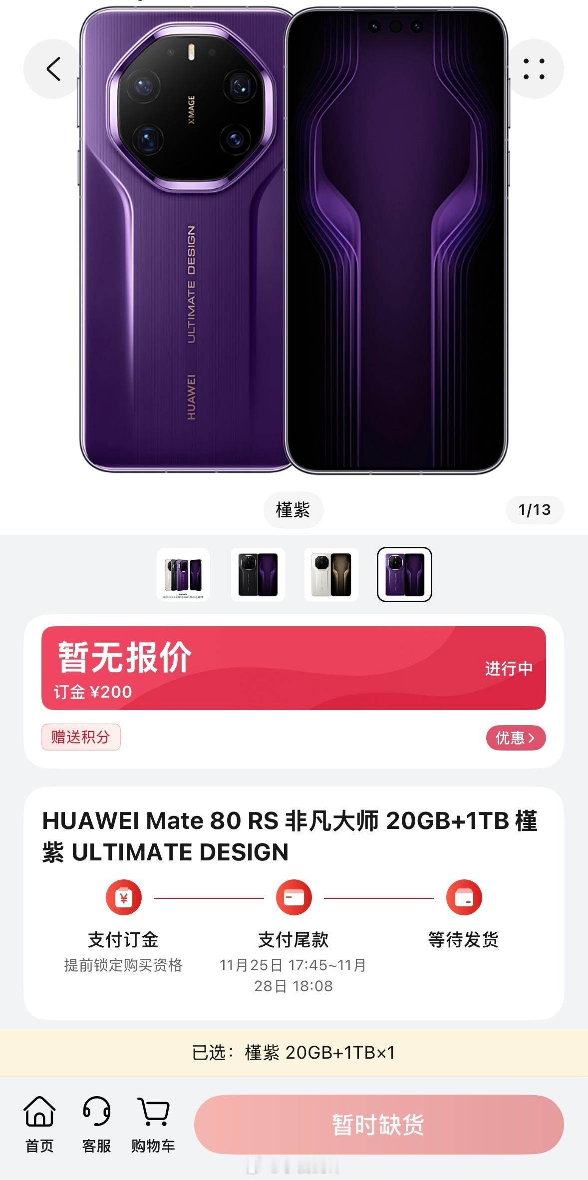 华为Mate80系列今天中午12:08开启预订高清外观照来了,一个金色,一个紫色