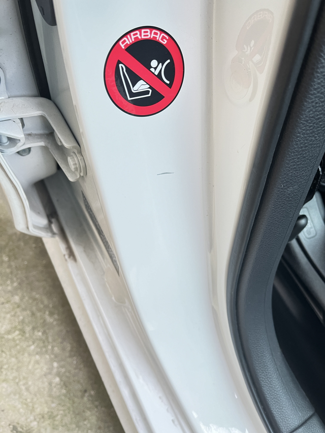 安全带没回弹副驾门框被磕了 这会生锈的吧?家人们怎么处理 补漆笔点一下? 上面那个贴纸哪里有卖?我把那个撕掉买张贴伤口上