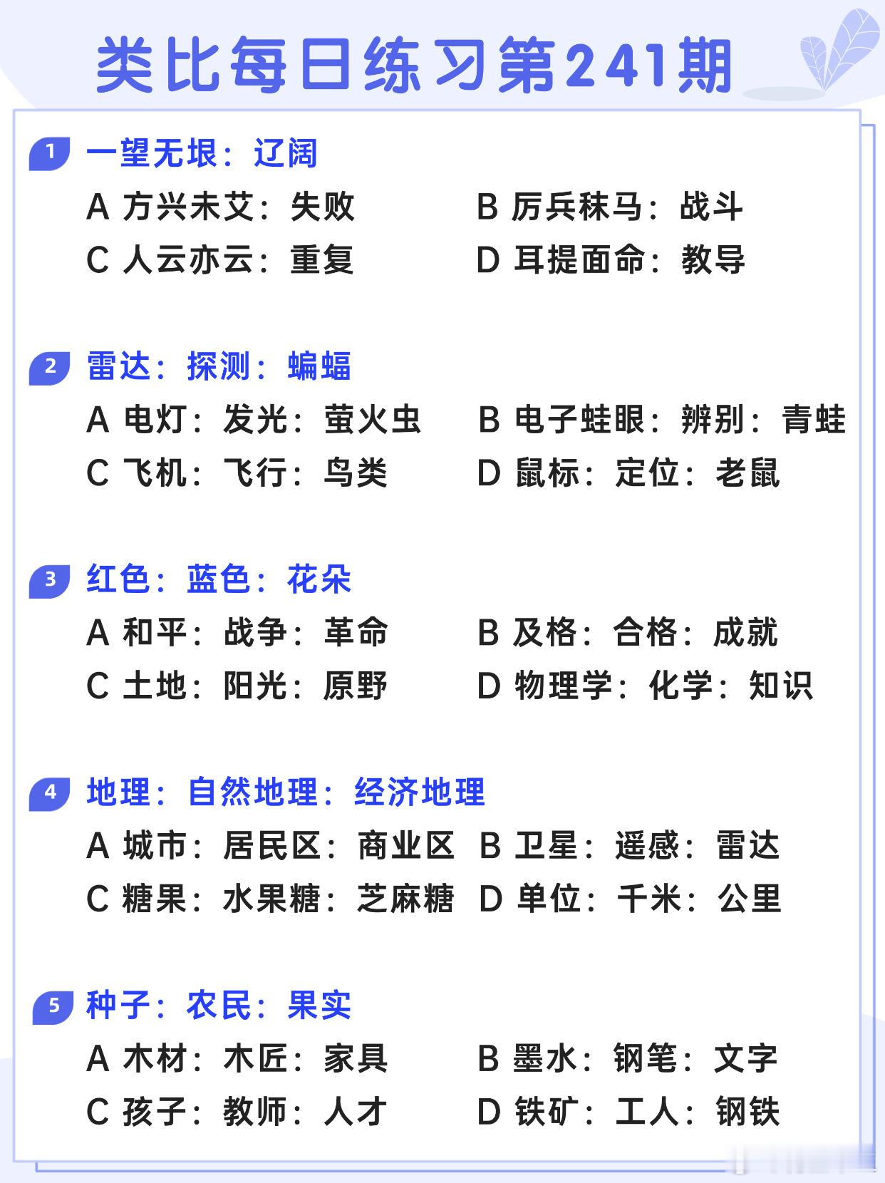 图推类比每日练习第241期图推难度:☆☆类比难度:☆☆