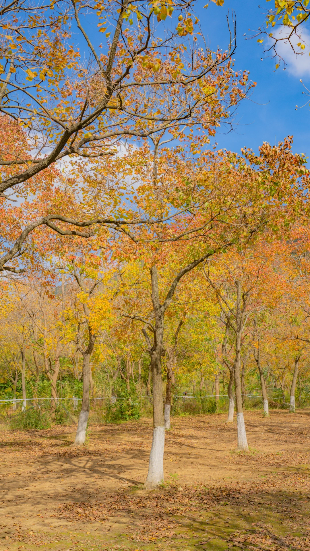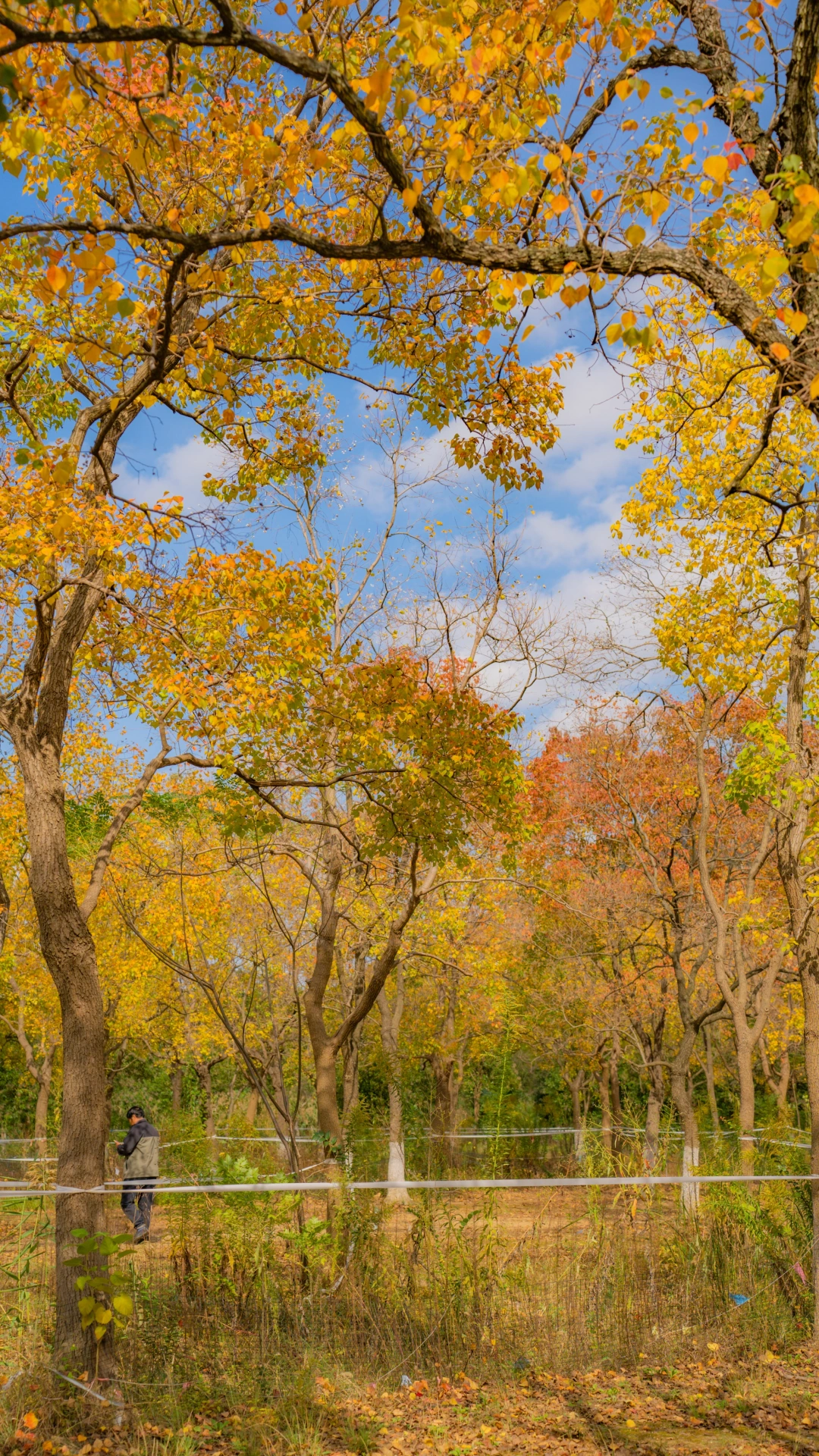 秋天 乌桕林以斑斓相迎 赤红是枝头不熄灭的火焰 赭黄是飘落的蝶羽 纯白是乌桕子炸裂的星芒 恍若撞见李商隐未写完的句子 「秋色绕天涯」在此刻具象成画 阳光穿透时 叶片变成半透明的琉璃盏 忽然读懂陆游那句 “乌桕赤于枫,园林九月中” 古人诚不我欺 这抹红是自然酿了一年的胭脂色 - 📍大阳山植物园 -