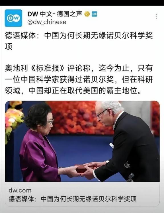 德国媒体曾问全世界各国民众一个问题:“中国科学家为什么会长期无缘诺贝尔科学奖呢?”有一次,是在瑞典的斯德哥尔摩,诺贝尔奖又颁了。灯光璀璨,掌声雷动,台上站着的却还是熟面孔,不是美就是日,要不就是德。中国科学家,依旧没上榜。有人开玩笑说,中国人每年都能在“猜奖”这事上拿个冠军,可真领奖那边儿,咱总是擦肩而过。可你要是只看表面,那就真冤枉了。 斯德哥尔摩的颁奖夜,灯光映照着领奖台上的金色奖牌,美国、日本、德国的科学家们轮番上台,中国代表团的座位却空荡荡的。德国媒体人举着话筒,四处追问路过的各国宾客:“中国科学家为什么会长期无缘诺贝尔科学奖呢?”有人低声议论,有人摇头叹气,这问题像一股风,瞬间刮到国内的实验室和论坛上。网友们刷屏转发预测名单,自嘲说猜奖这项“副业”中国人稳拿冠军,可真格的领奖,总差那么一步。 中国大陆本土科学家在诺贝尔科学奖上,就只有2015年一位生理或医学奖得主,她从青蒿中提炼出抗疟疾的青蒿素,救了全球多少人命,这事儿搁谁身上都得竖大拇指。物理奖、化学奖这些,大陆到现在还没人上榜。那些华裔得主呢,多是上世纪中叶生在中国,后头去了美国、台湾或英国那边深耕。1957年,杨振宁和李政道俩人研究粒子物理,打破了对称定律,那会儿他们是台湾籍。   1976年,丁肇中发现J粒子,美台双重国籍。1986年,李远哲搞化学反应动力学,台湾人。1997年,朱棣文用激光冷却原子,美国出生华裔。1998年,崔琦量子霍尔效应,美国华裔。2008年,钱永健绿色荧光蛋白,美国华裔。2009年,高锟光纤通信,英国华裔。这八位加起来,成果全在海外实验室里结的果,说明早期国内科研条件跟不上趟儿,人才外流严重,好些人年轻时出去,留在外头才出大成绩。 这份缺席,还得怪诺奖本身的脾气。它不追当下热点,专挑几十年前的旧账来算。屠呦呦1971年就搞出青蒿素,硬是等到2015年才发奖,中间隔了44年。其他得主也差不多,好多工作是五六十年代的产物。中国科研真正发力,是改革开放后的事儿,尤其是2010年后才加速奔跑。头几十年,资金少、设备差,全球研发经费排名老在后头。   到了2025年,国内研发支出3.6万亿元人民币,占GDP的2.68%,世界第二,只比美国差一截。每年论文产出90万篇,全球第一,顶尖科学家四万多人。这些数字不是吹的,是实打实的进步。可诺奖这节奏,现成果得熬到2040年后才有戏。 体制这块儿,国内科研讲求实打实,项目三年一周期,五年收尾,科研人员得盯着KPI,论文、职称、经费,一样不能少。国家自然科学基金委的数据显示,课题周期短,考核严,这套机制推着大家往前冲,可诺奖偏爱那种死磕几十年的事儿。日本的本庶佑研究免疫30年才中奖,搁国内,早中期没动静,可能就得换人了。   评价体系重数量,论文影响因子、转化率啥的,得层层过关。数据显示,中国论文自引率60%以上,美国才29%。诺奖委员会看的是原创、基础、颠覆,不是谁发得多谁牛。国际学术圈西方占大头,你得去会议上露脸,顶刊发文,拉人脉。有些得主,早几年就在圈里传开了。 而文化和目标的差异,也拉长了这距离。诺奖设计成最多三人共享,喜欢孤胆英雄。中国科研是集体干,两弹一星、杂交水稻、青蒿素,全是大团队合力。维基数据上,那些华裔得主多在海外单枪匹马。中国重实用,解决老百姓吃饭穿衣的难题。 德国媒体的问题,搁这儿问得有道理,可答案得用事实回击。中国科学家正用自己的步子,丈量时代高度。未来,斯德哥尔摩的灯光下,总有中国身影站上去。  MCN双量进阶计划