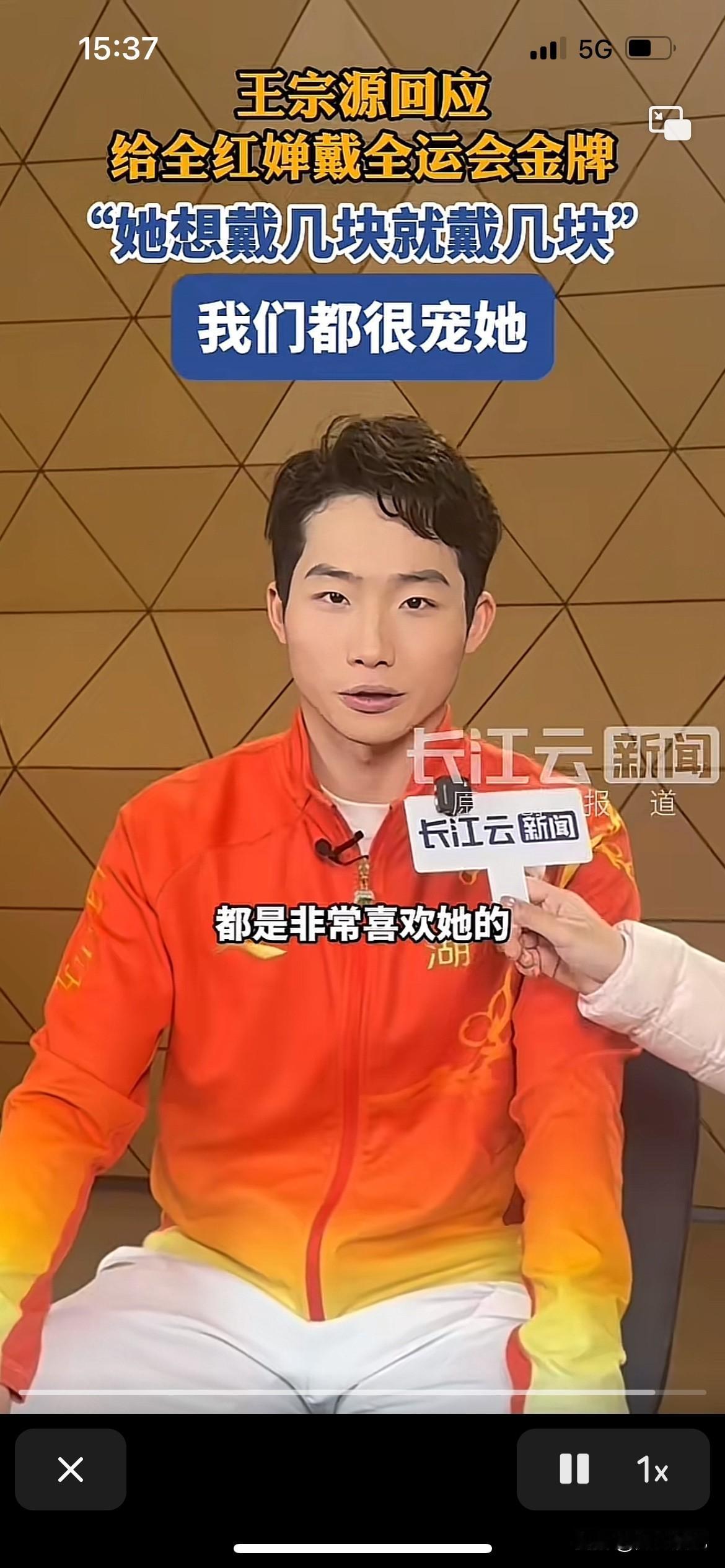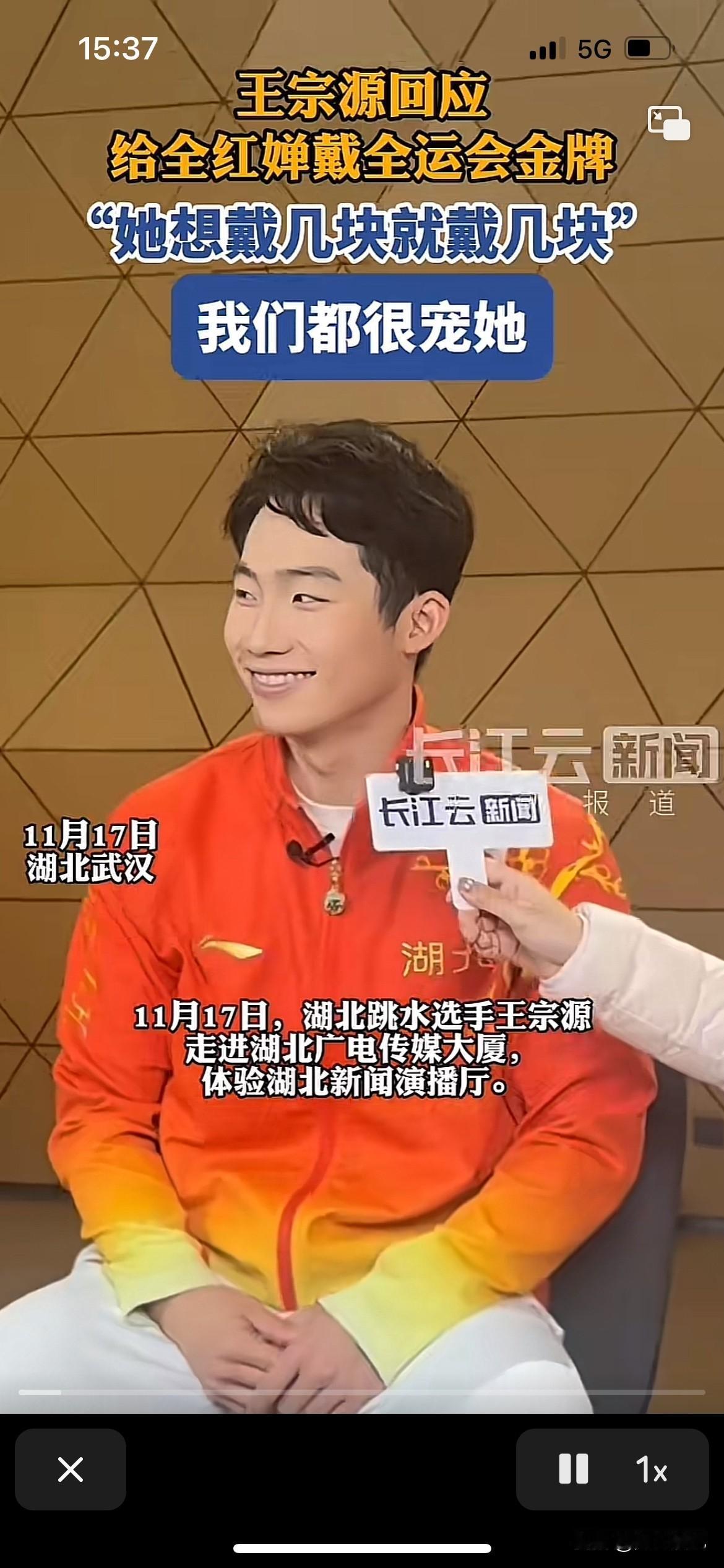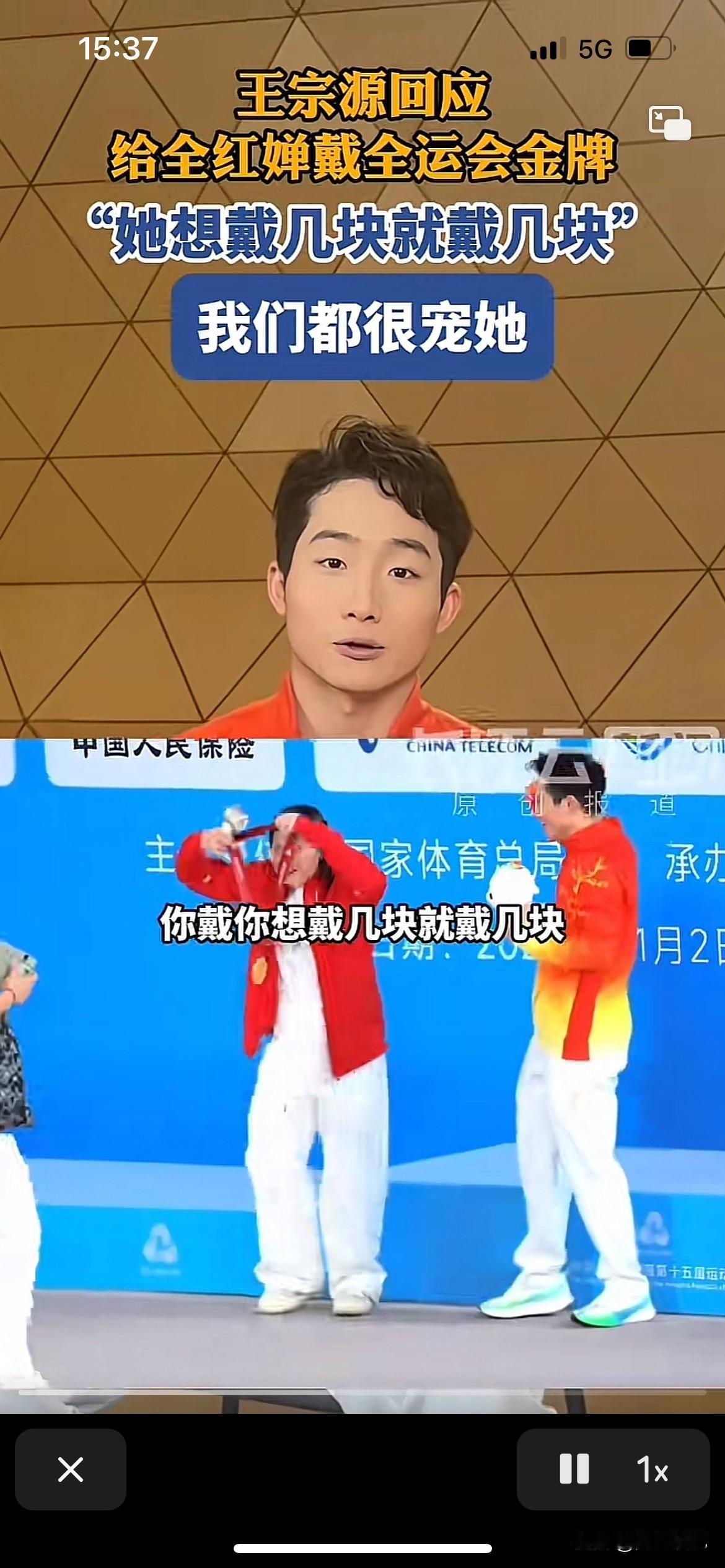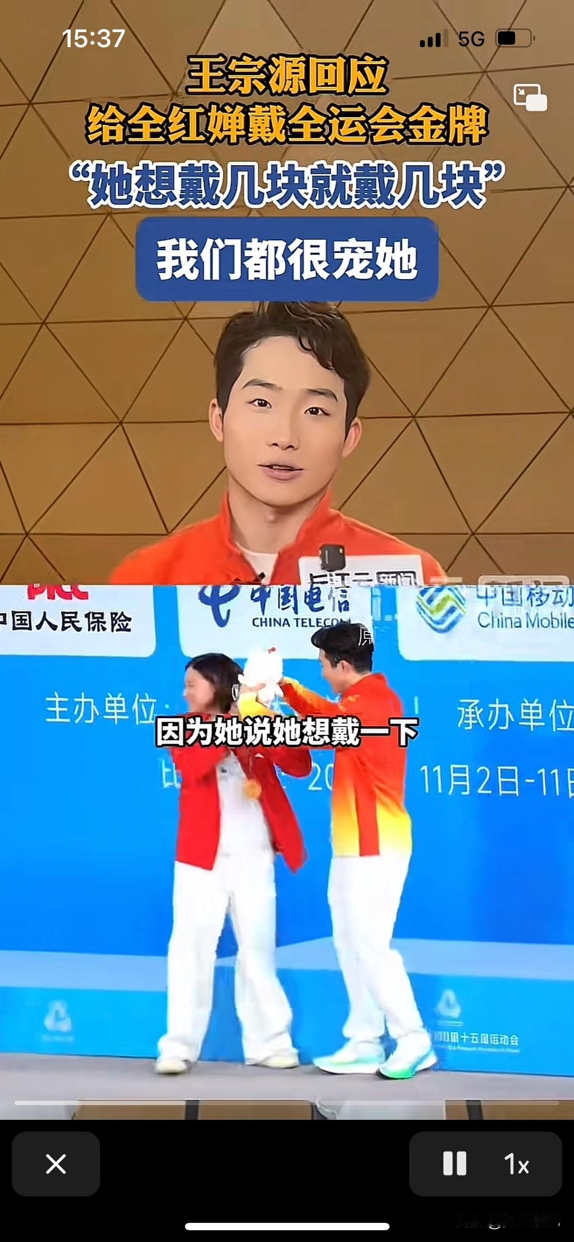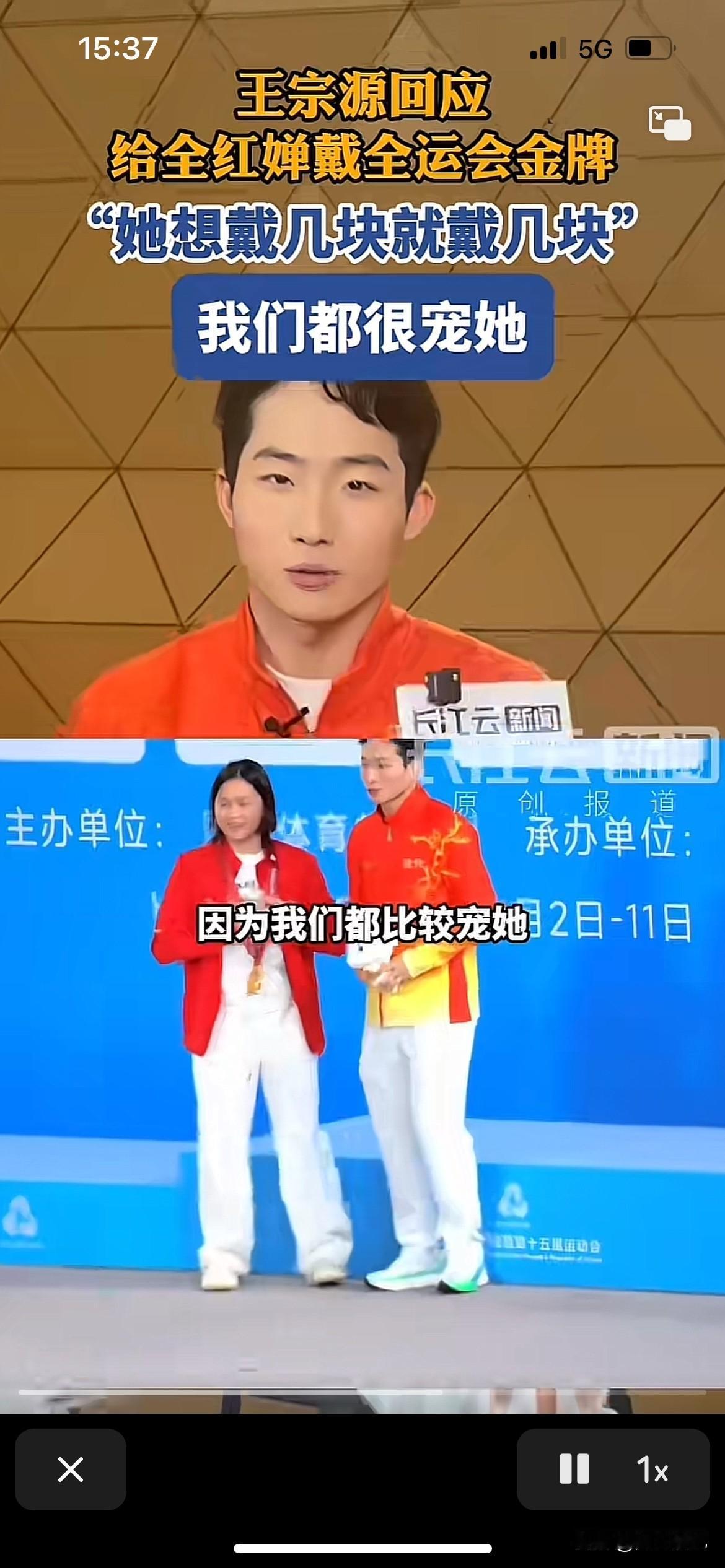 全红婵在全运会上抢师哥的金牌戴在自己的身上,在这种场合也只有她敢这样做,因为大家都在宠着她,换做其他运动员肯定是严肃认真的,但是婵宝就是个无厘头的小孩子,不分场合的。 怎么会有那么好、那么善良、那么真诚的人,直播是为了宣传全运会,最后结束向所有观众鞠躬,直播的礼物全部捐了做公益。 全红婵本身就是一个很好的人,这种下意识记得别人的付出、很平常的行为真的很戳中心窝,细腻共情活泼开朗同时在全红婵身上体现。