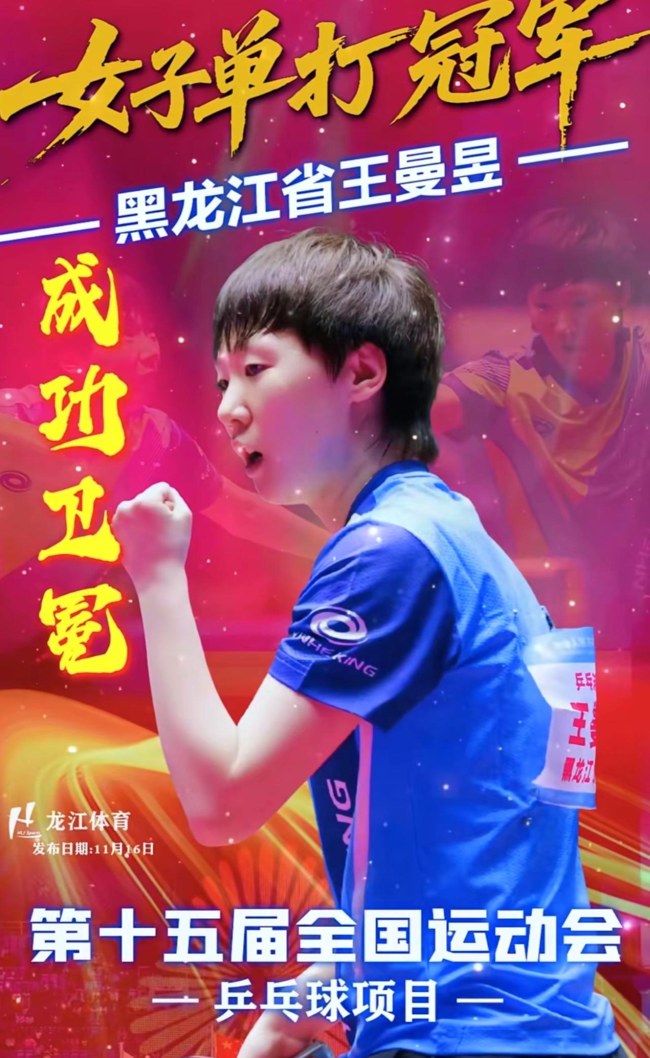王曼昱给黑龙江长脸了, 刚把冠军揣兜里,卫冕海报立马就跟上,这速度快得让人还没缓过神来,简直是“冠军刚落地,排面就到位”! 而且这海报真不是随便糊弄的,“成功卫冕”四个大字一出来,骄傲感直接拉满。要我说,黑龙江不宠她宠谁啊?毕竟全运会冠军比奥运金牌还难拿,她却稳稳拿了两次,这才是真正的赛场王者,实力就摆在那儿,根本藏不住。 你们觉得曼昱这次卫冕最让人惊艳的是哪段表现?来评论区聊聊你印象最深的瞬间!