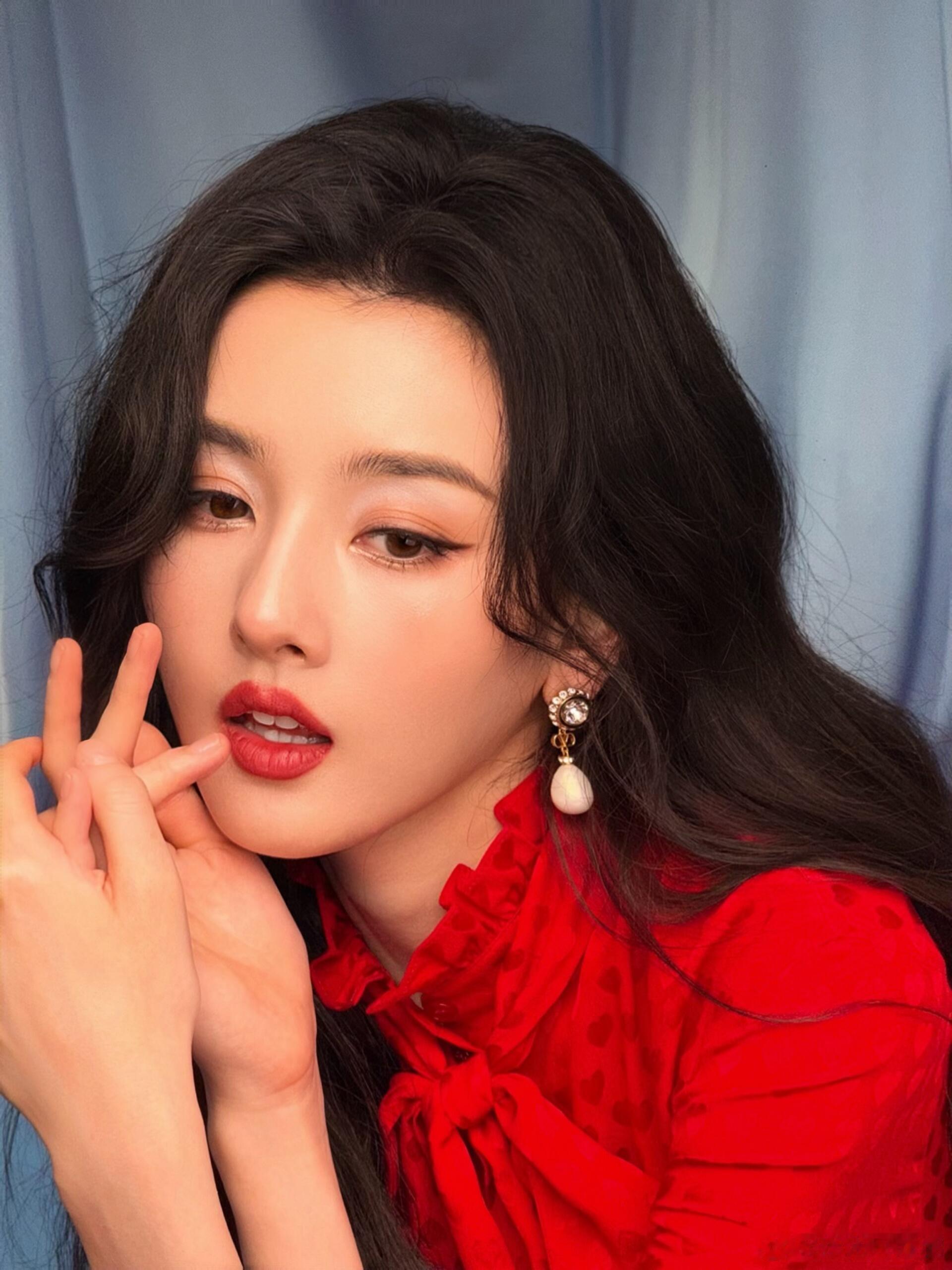 宋祖儿这一身红,是把“艳而不俗”的风情捏得刚刚好~卷发散着柔雾感,珍珠耳坠衬得下颌线清而软,指尖那支唇釉的水光,和她唇上的釉色晃成一片——冷艳里裹着点娇,这哪是硬照,明明是把“明艳大小姐”的氛围感焊在了镜头里。