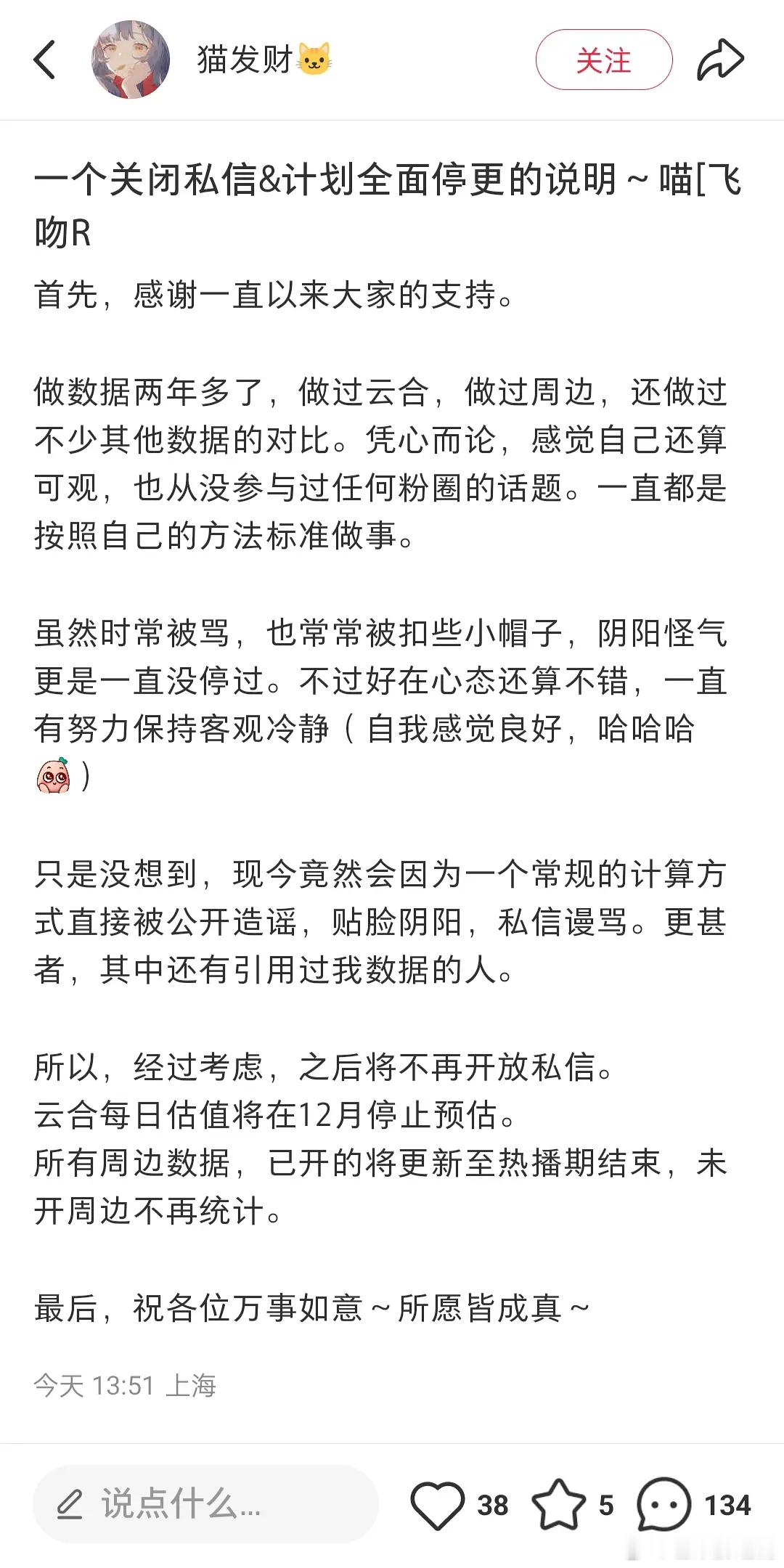 因为卷入三大男主剧周边销售额,猫发财停更了