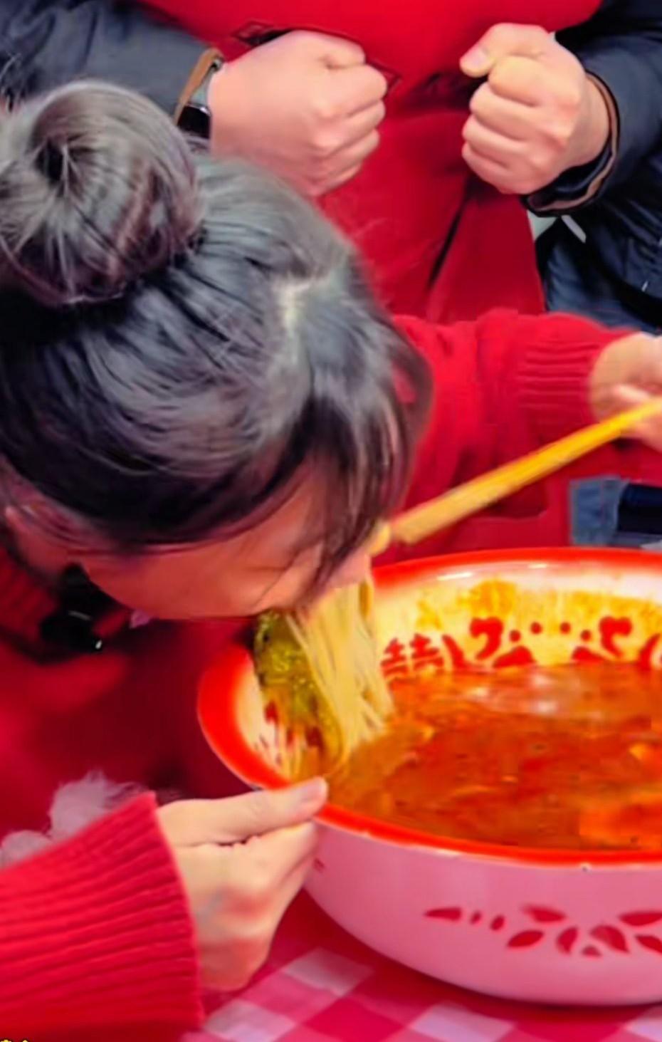 这个叫半饱的姑娘果真是厉害,人家是用小碗吃饭的,她直接用脸盆,装了满满的一盆面条,还有时间限制的,必须在一分钟之内吃完。 开始我觉得这女人肯定会输,毕竟这么一大盆呢,没想到啊,这女人吃下去的时候直接不带嚼的,送到嘴里就滑到胃里,而且还提前三秒完成了任务,57秒就把这一脸盆的面条给吃光了,惊得我真的是目也瞪口也呆。 果然是高手在民间,不过这样吃会不会把胃给吃撑了呀?看上去她人还这么瘦,是怎么做到的呀? 这个女人如果代言减肥产品,估计是个不错的人选,大家说呢?