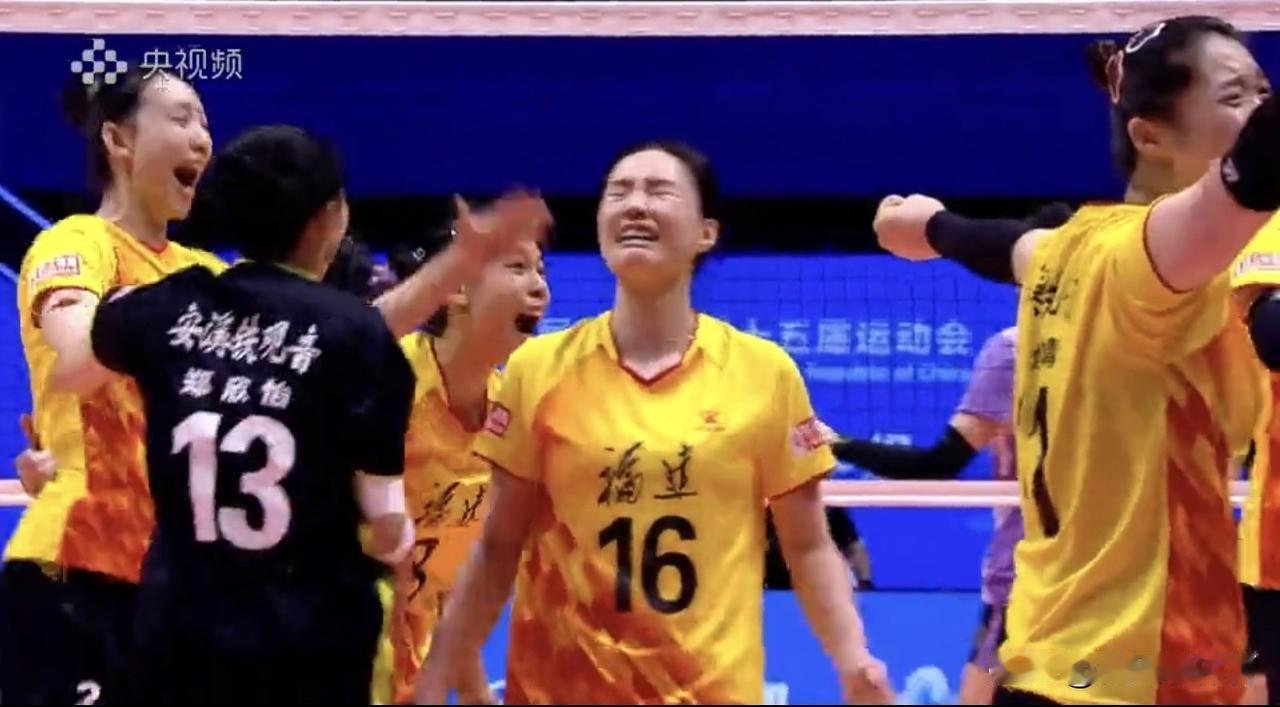 福建女排哭得梨花带雨的[流泪][流泪]随着王艺竹4号位扣球出界,福建女排3-1赢了卫冕冠军天津!全队抱在一起痛哭流涕,替补上来的奇兵,15号小将高家源捂着脸哭,之前好像没咋看过她打比赛,二传梁桂倩泪流满面,叶佳婧肩膀伤病很重,但是依然在坚持在顶啊,张婧和郑益昕也哭了……今天人家福建女排打得确实出色,感觉场上都是自由人啊!妹妹李盈莹和王媛媛打完这场比赛,也算是终于要脱离苦海了,要出国打球了!