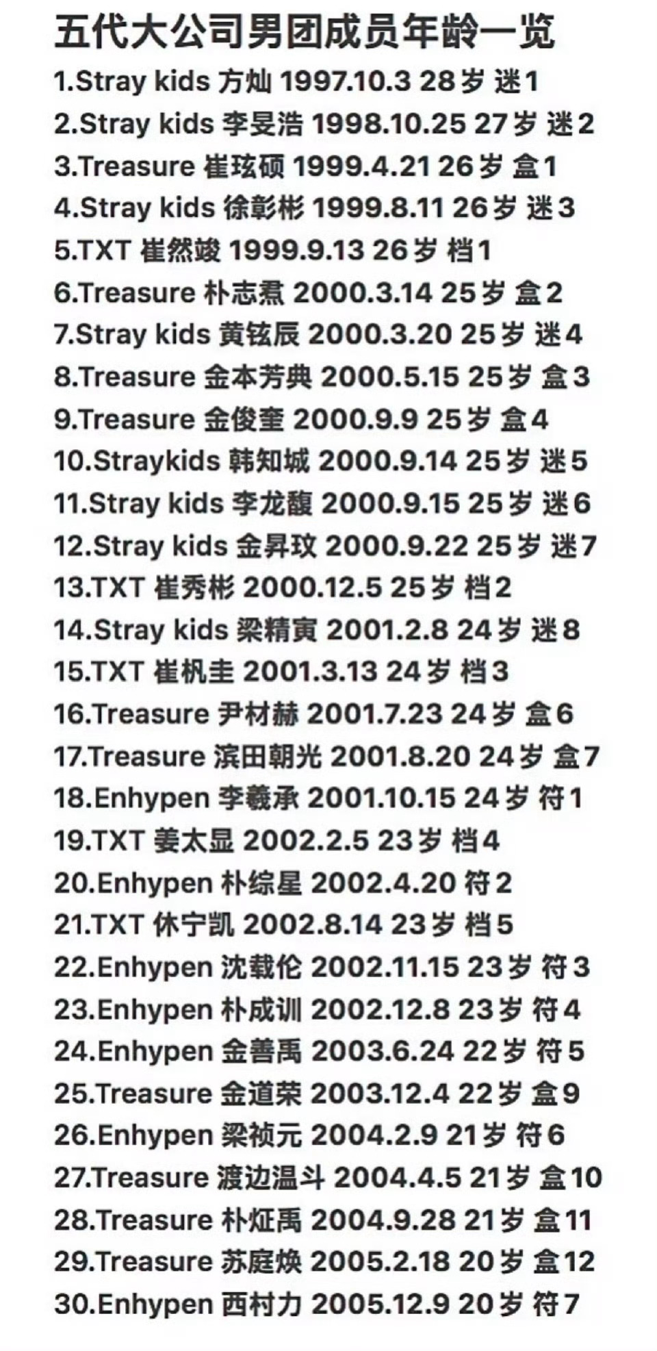 五代热门男团成员年龄汇总【straykids/txt/treasure/enhypen】