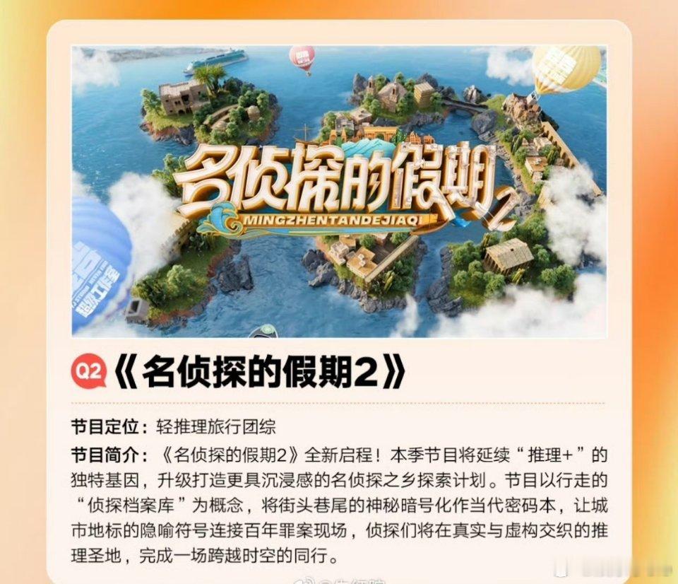 芒果TV综艺《名侦探的假期2》4月录制,更好的消息这次传的拟邀嘉宾里有魏大勋!!我们大勋终于也可以去玩了