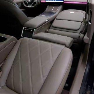 新款享界S9是标配副驾零重力座椅、大五座的,这个版本的前后排和S9T几乎是一模一样,但它可以选装后排老板座零重力座椅,S9T没有这个待遇。毕竟S9作为纯正轿车,有商务需求的客户,选后排老板座零重力座椅很适合,这个座椅坐上去真心非常舒适。后排扶手做的也非常高级,阻尼感的线性很棒,甚至是上面那个盖板也有阻尼,开到一半的位置能悬停,扶手处带50W风冷手机无线充电。因为后排控制屏和冰箱都变成了和S9T一样的了,现在S9扶手处的储物空间和原来冰箱的位置也变了储物空间,所以这两个位置可以放很多东西。选装了后排老板座零重力座椅的新款S9无疑是60万以内轿车里,后排最豪华的轿车