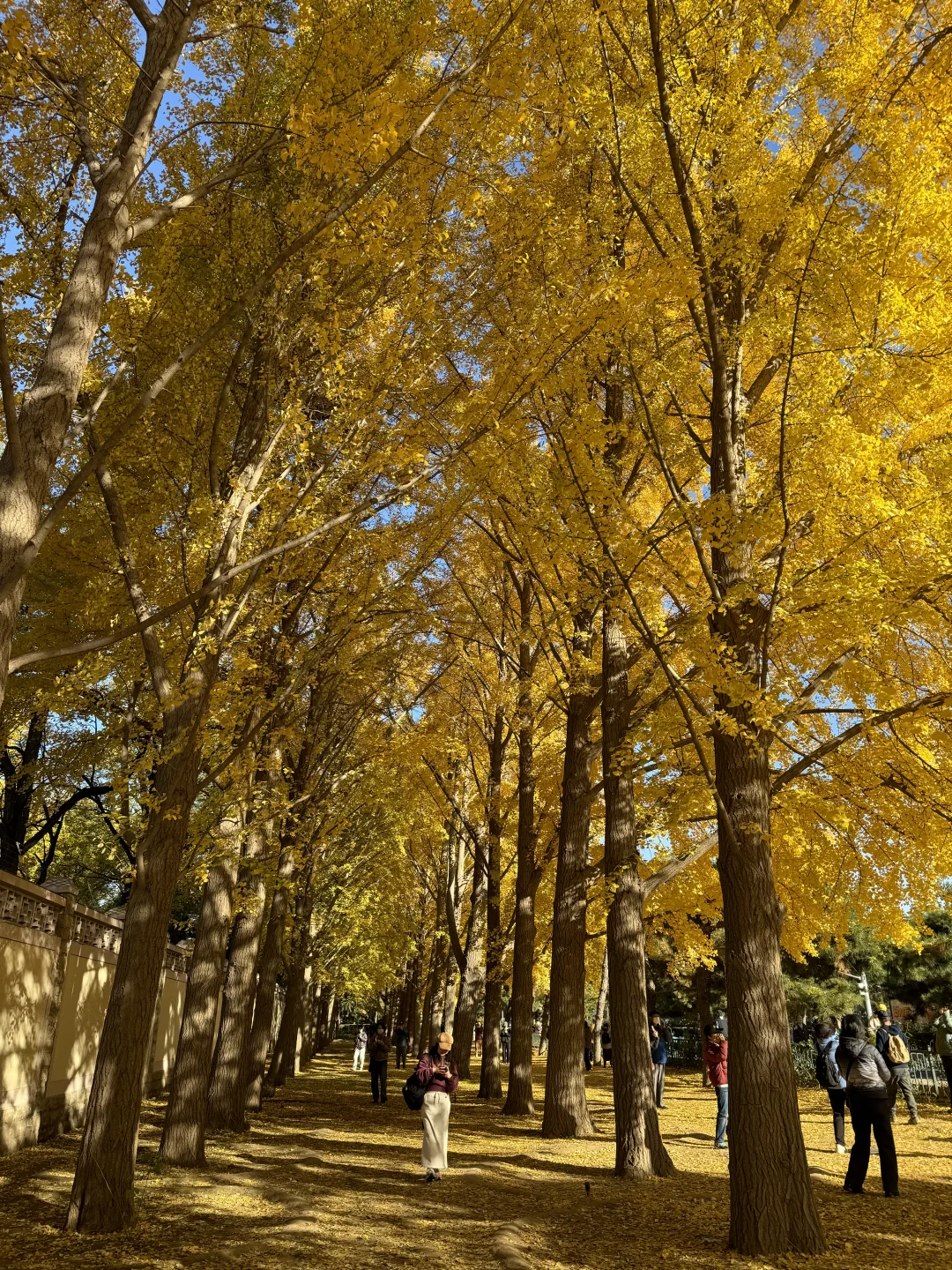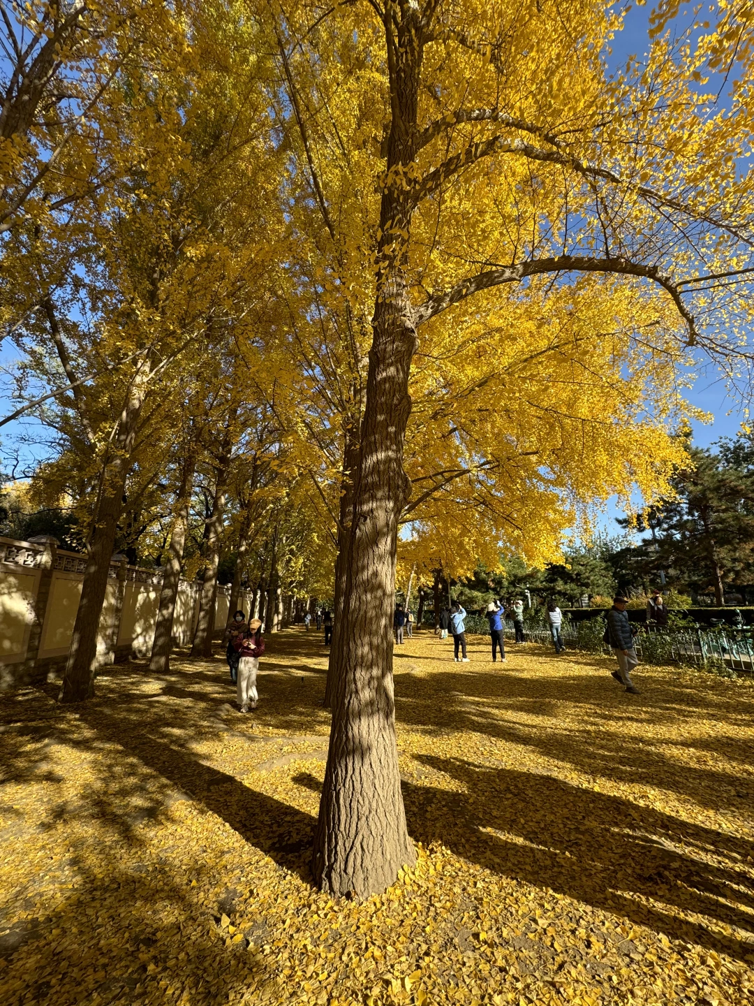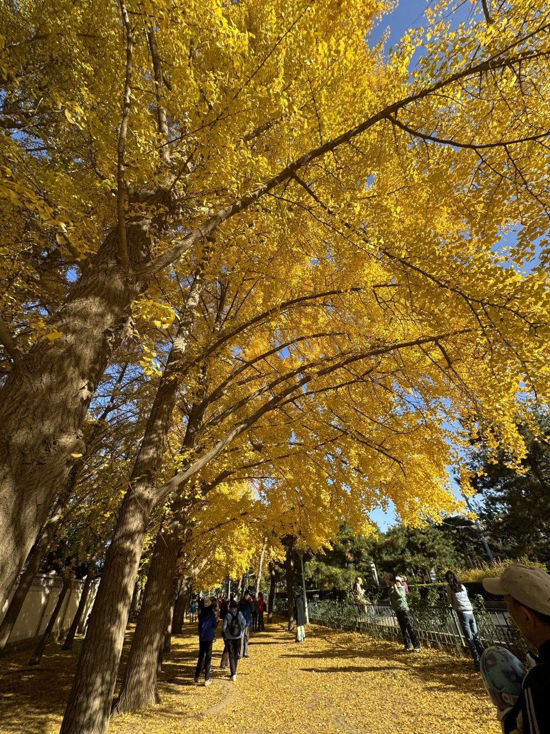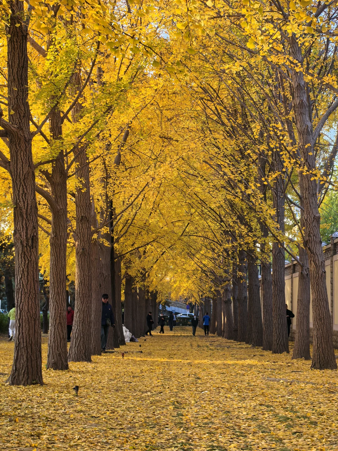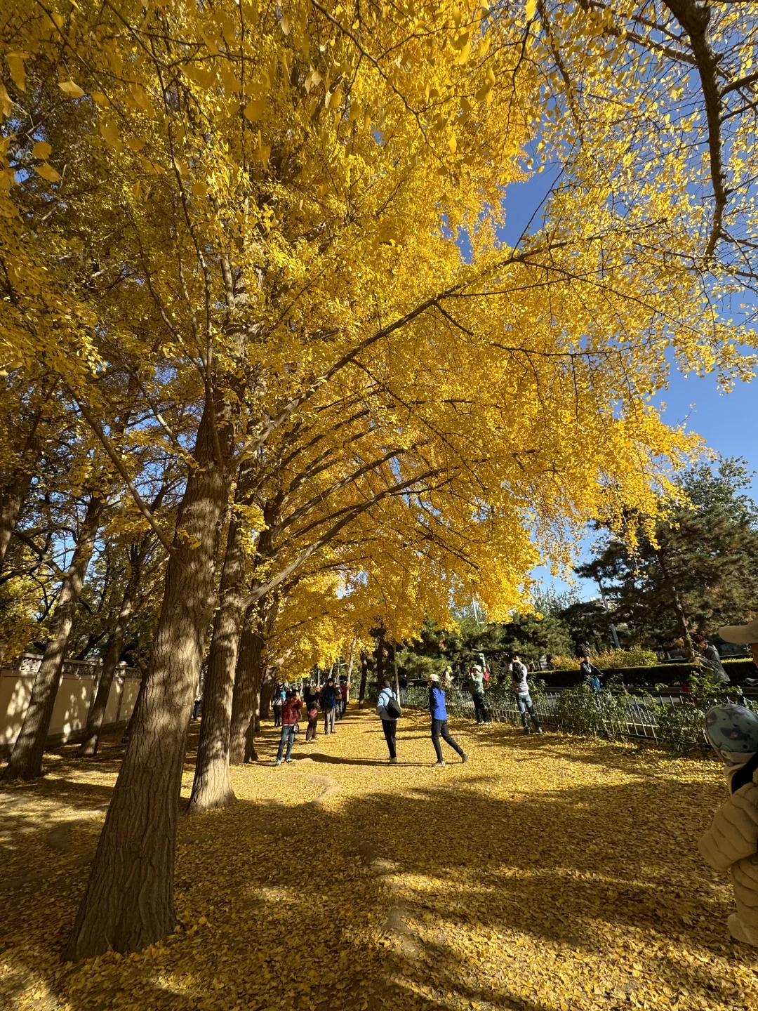 昨天有人说钓鱼台已经掉不少了 今天一大早来看了下 整体来说 1.南段还可以,掉了30-40% 2.北段掉很多,得至少掉了一半 3.北边的阜成路,已经稀稀拉拉了,部分树秃了,不好看。包括桥上也一般。 大哥特意从大连过来的(国庆我去大连,他带路),他起来早,7点到了,大概就二三十人,人少。图2-4-5他拍的 我是9点到,已经有些人了。如果开车来,停月坛北路。其他地方不好停车。 预判钓鱼台迎宾馆银杏大道还能看3天左右,如果风不大。 这会刚大八大处(大悲寺),等下有时间再去碧云寺,紫竹院。再分享实况