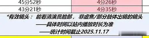 虚化背景板也要算镜头吗?丁禹兮粉丝做的表格写的很清楚,《有效镜头》是指能看清演员脸部,非虚焦,部分肢体出镜的镜头,很合理阿