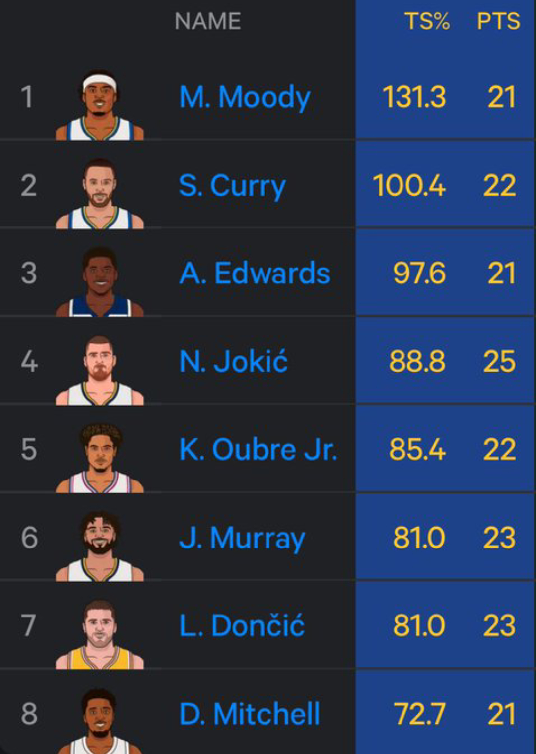 本赛季单节得分超过20分的场次效率排行榜摩西摩西 我是穆迪 成为榜首 打破质疑