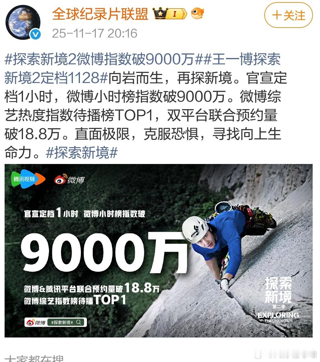 王一博探索新境2定档微博平台战报来了,微博指数破9000万,年度顶级事件标志☝🏻