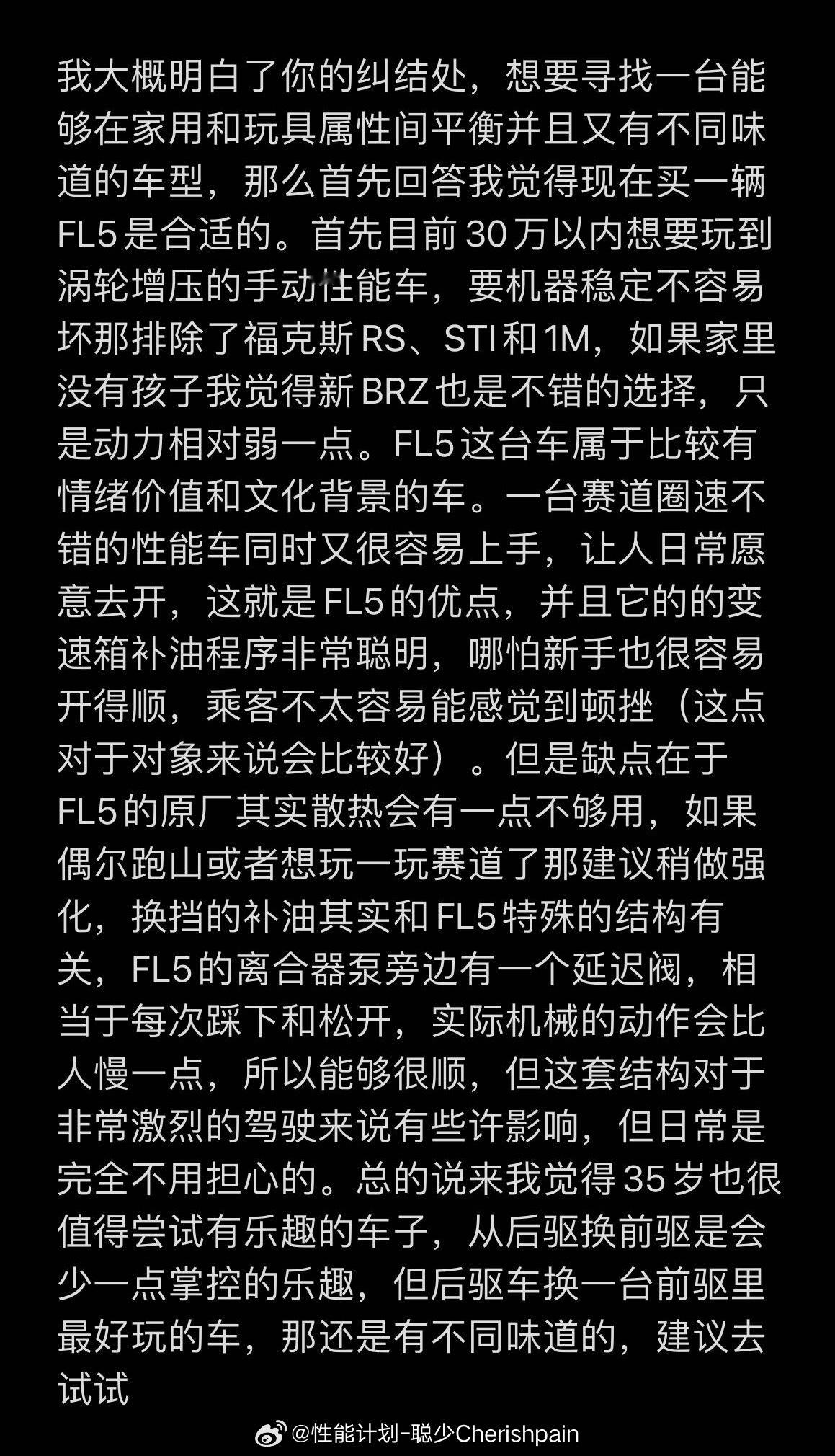 一位35岁的粉丝之前玩F87M2,准备换FL5Type-R,但是看完视频有些