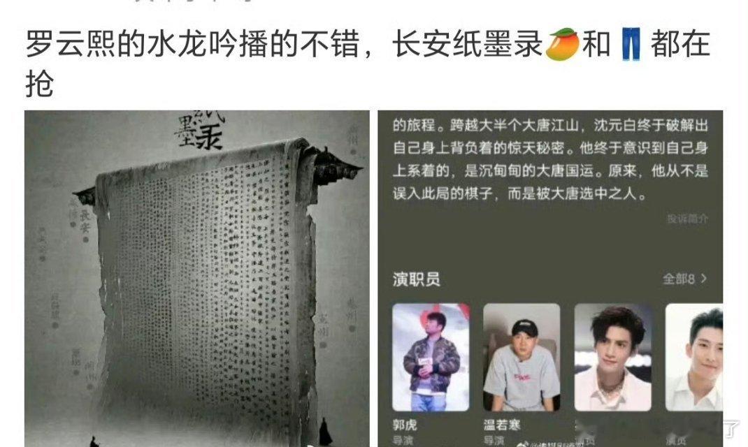 罗云熙的《水龙吟》播的好不好,芒果🥭最清楚 ,网传罗老师的下部戏一直在👖的,但现在🥭也想来分杯羹了