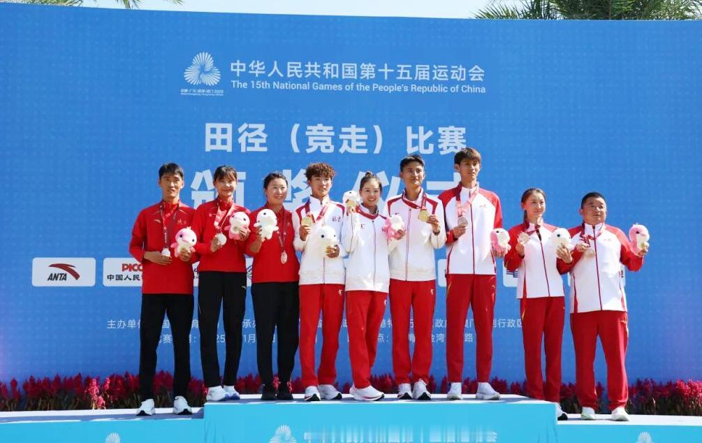昨天进行的第十五届全运会马拉松竞走混合接力比赛,由奥运冠军杨家玉同18岁小将石升吉组成的北京一队以2小时58分01秒获得金牌,也刷新了此前的最好成绩,两人之前在20公里竞走单项分别拿到金牌和银牌,陕西三队和山东二队分获得银牌和铜牌,由老将刘虹和王凯华组成的广东一队以2小时59分34秒的成绩刷新PB获得第四名。