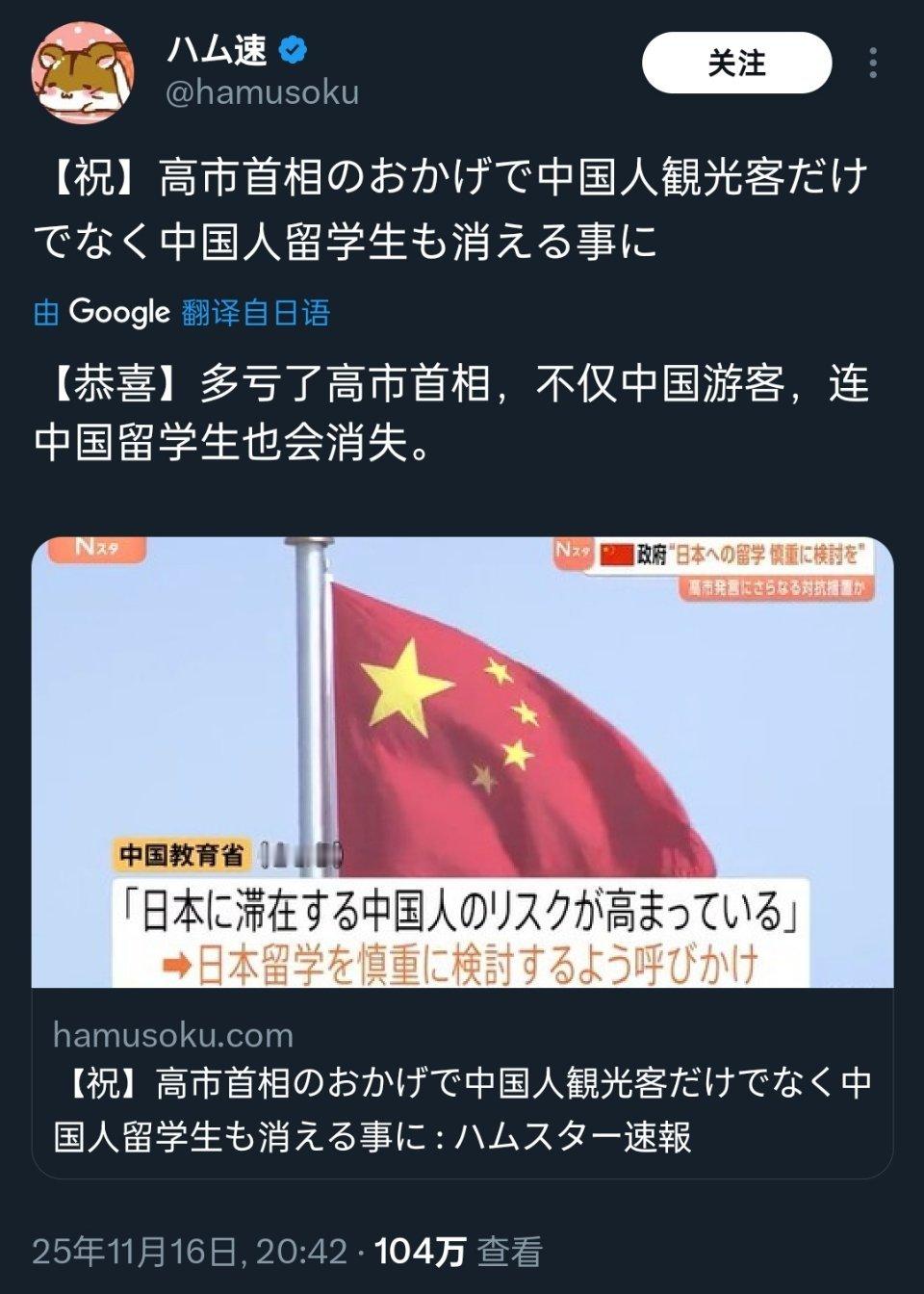 日本人真是鼠目寸光,日本网民感谢高市早苗,说中国游客和中国留学生都会从日本消失。