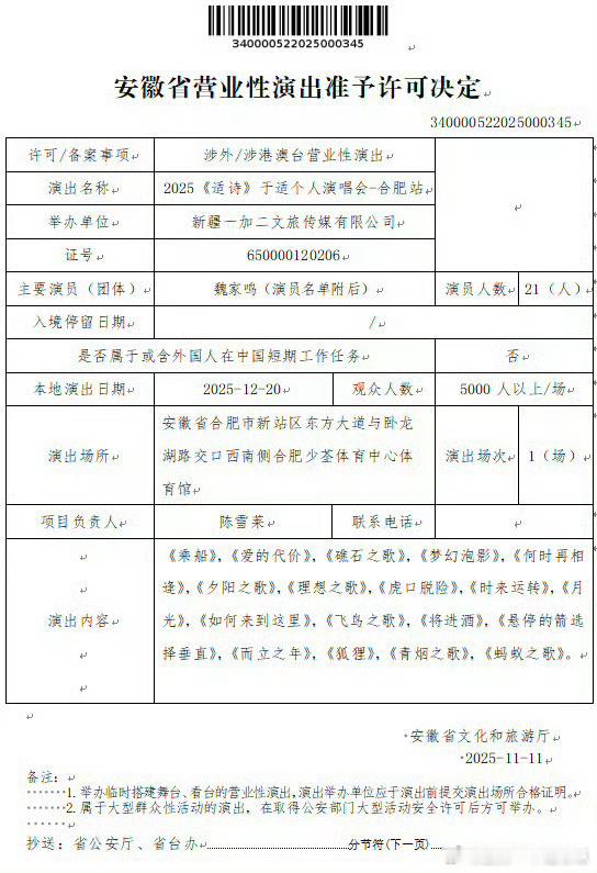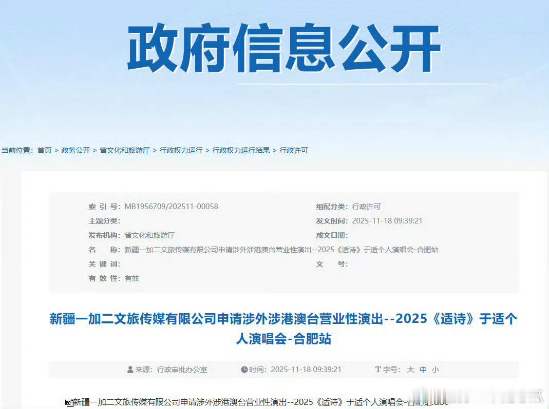 于适合肥站演唱会的审批是正式通过了,政务信息公开有