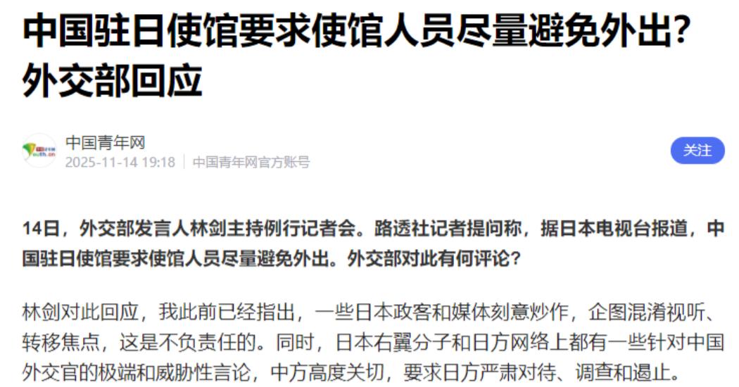 “敢动薛剑,就是宣战!”日本右翼的死亡威胁,已经把“外交摩擦”强行升级为“主权侵犯”,中国驻日使馆已下令人员“避免外出”! 这绝不是一次孤立的“网络暴力”!它是一次有预谋、有配合、有美国驻日大使亲自下场煽风的“极限压力测试”。 就因为薛剑总领事说过 “台湾是中国领土”,这句千真万确的大实话,直接戳中了日本右翼的 “痛处”。一场蓄谋已久的围剿,说开始就开始。 线上的恐吓先炸了锅。社交平台上,AI 生成的薛剑血腥遇难图疯传,断头照配着 “必死” 的字眼,看得人脊背发凉。 极右账号直接贴出大阪总领馆的地址,喊着 “上门讨说法”,还组织机器人账号批量刷屏,把正常的社交平台变成了恐吓阵地 更阴的是,工作人员的私人手机收到钓鱼链接,伪装成快递信息,点开就藏着定位和监听程序,连私人空间都要渗透。 线下的挑衅也是步步紧逼。总领馆的邮箱被死亡威胁邮件塞爆,附件里的血腥图片让人作呕;门口常年围着抗议的人,扔杂物、骂脏话成了常态,垃圾箱里居然出现了染红的塑料刀,上面还画着薛剑的头像。 东京大使馆,收到含刀模型的快递,半夜有可疑人员翻墙扔纸条,音箱车在周边循环播放辱骂口号,日夜不休地滋扰。 这背后,怎么少得了日本政客的推波助澜 高市早苗跳得最欢,公然喊 “台湾有事就是日本有事”,还接见台湾代表,明晃晃干涉中国内政。等薛剑总领事出面回应,她倒打一耙,说这是 “威胁”。自民党跟着起哄,开会议要驱逐薛剑,大阪市议会也跟风搞 “道歉决议”,把黑白完全颠倒了过来。 让人不齿的是美国驻日大使的操作。拉姆・伊曼纽尔直接转发薛剑的表态,还标注 “面具掉落”,硬生生把主权宣示歪曲成 “中国威胁”。这哪是外交官员,分明是挑事的 “点火者”,就盼着中日闹僵,美国好坐收渔利。 讽刺的是日本政府的 “选择性执法”。根据国际法,外交官享有人身不可侵犯权,日本有义务保护薛剑总领事的安全。 可现实呢,警方在总领馆周边象征性站站岗,对右翼的公然恐吓睁一只眼闭一只眼,却对着薛剑的正当回应大做文章。这种双重标准,说白了就是纵容挑衅,默许侵犯。 这场风波,根本不是孤立事件。刚好赶上美日 “利剑 2025” 联合军演,4.5 万人在冲绳周边搞 “夺岛演练”,离台湾岛就 300 公里,针对性明明白白。 日本还趁机把防卫预算提到 GDP 的 2%,买美国的先进武器,借着 “抗中” 的由头,偷偷搞扩军。薛剑总领事成了他们的 “靶子”,用一场外交冲突,掩盖修宪扩军的真实图谋。 中国驻日使馆让人员 “避免外出”,不是怕了,是不想让工作人员陷入危险,是理性的安全防护。外交部发言人林剑直接亮明态度,要求日方严查恐吓行为,守住国际法底线。这话说得硬气,因为背后站着的是强大的中国,不是百年前任人拿捏的弱国。 敢动中国外交官一根毫毛,就等于向中国宣战,这不是空话,是底线。 这场围绕薛剑的风波,就是一场多重矛盾交织的 “阳谋”。可他们打错了算盘,中国在核心利益上,从来不会妥协。