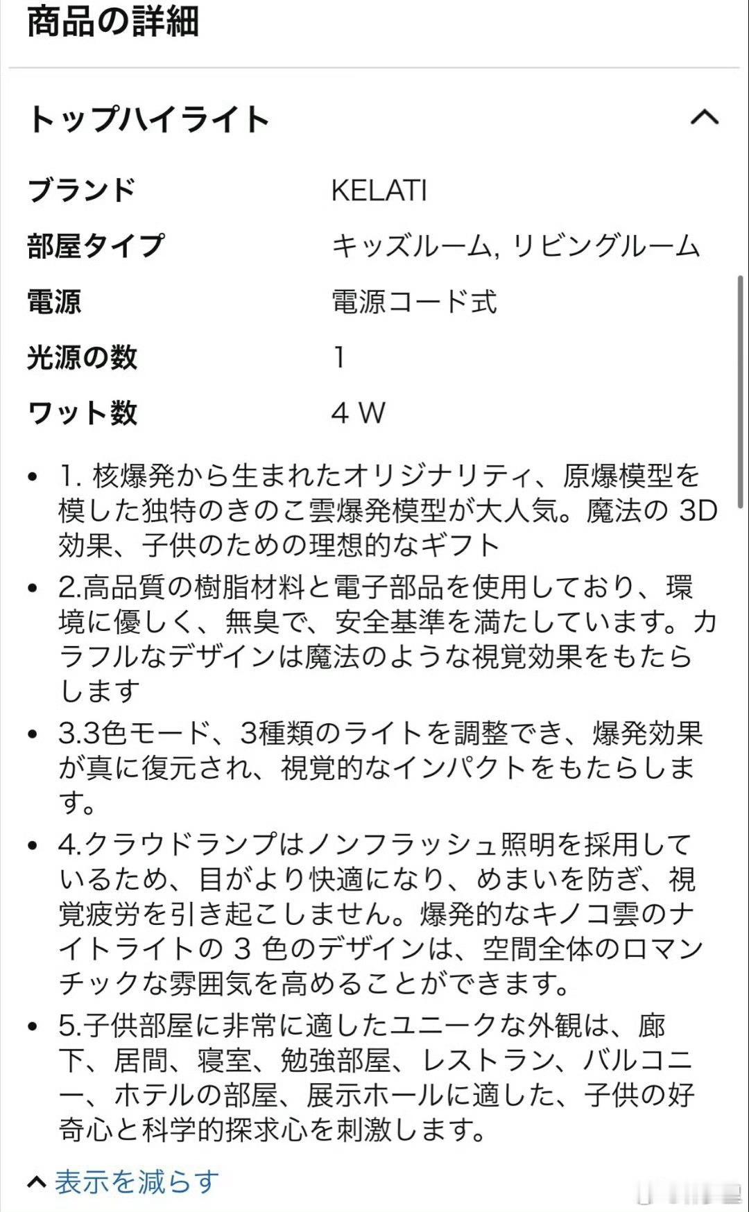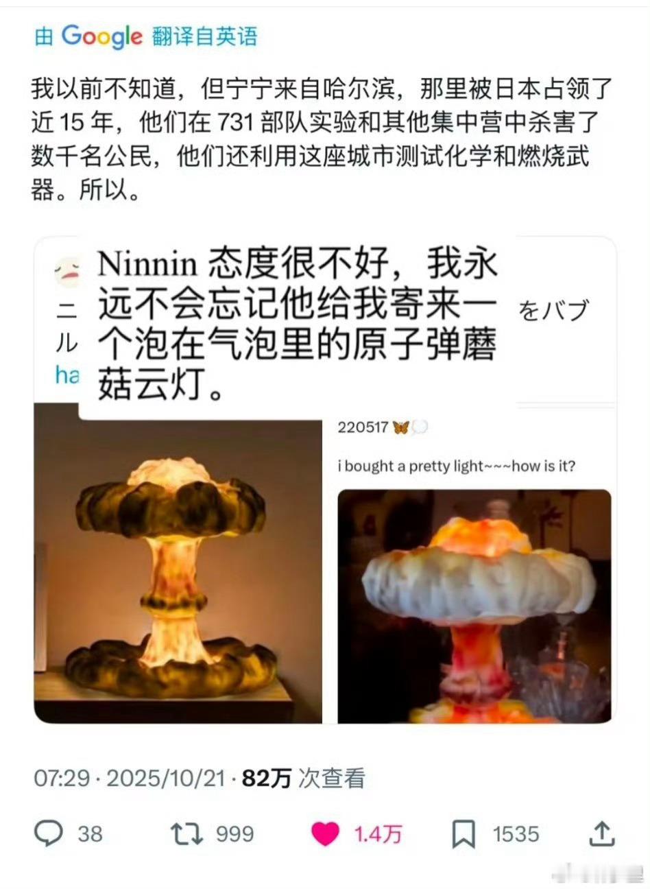 小日本的请愿原因,是因为中国成员宁艺卓2022年5月在泡泡上,分享了一张原子弹爆炸蘑菇云造型的灯,2025年被小日本翻出来说乳日了。然而,这个造型的灯,日本本身就有售卖,日文说明上还介绍非常适合儿童房,图3图4。日本人早不发癫,晚不发癫。中国成员发的,就开始发癫了。乐。明明原子弹炸广岛长崎都是假的,没有这样的历史,日本人究竟在敏感些什么呢?一生敏感的霓虹晶。