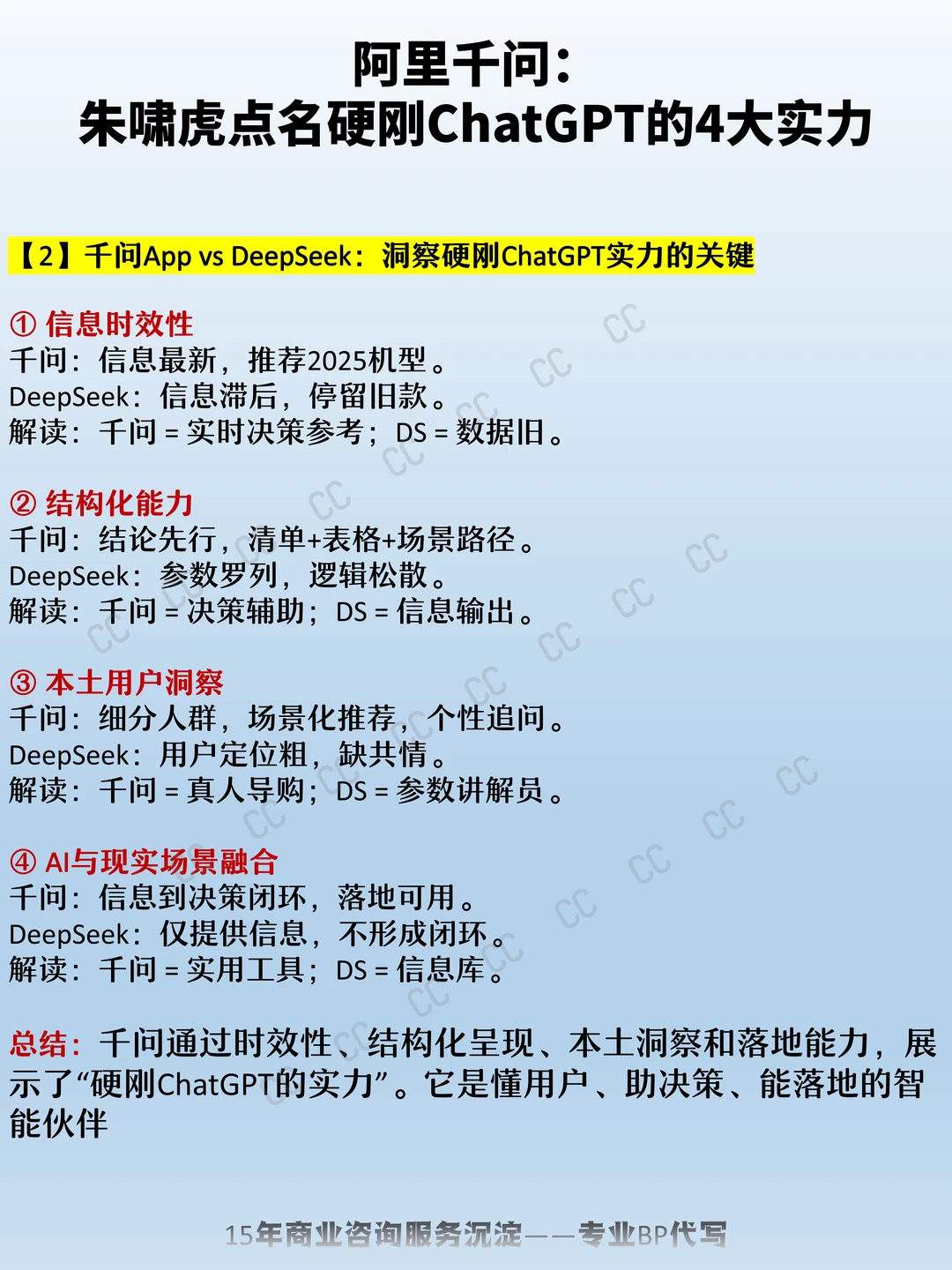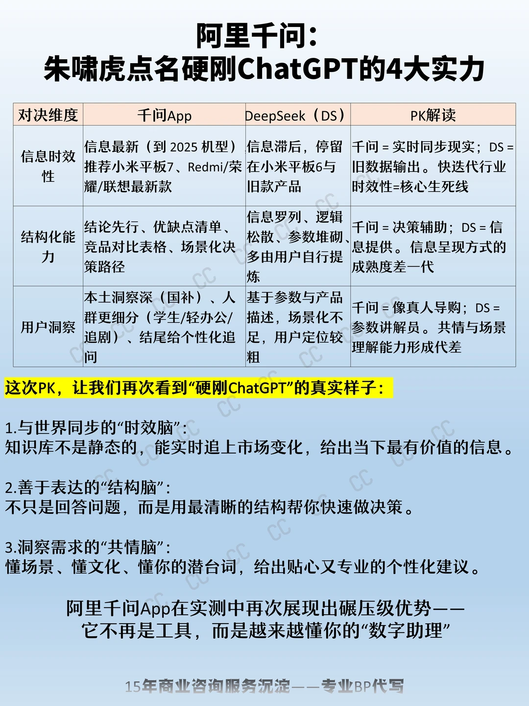 阿里千问的终局不是比技术参数 而是解决真实问题与懂用户的能力当你把每一次问答、每一次场景化推荐 都当作与用户建立深度决策链接的“智能触点”时 才真正看到国产AI能够“硬刚ChatGPT” 既对标全球标准,又碾压本土同类体验