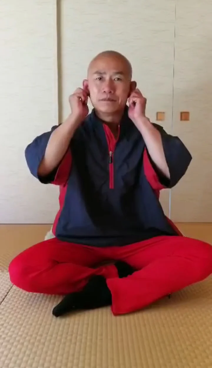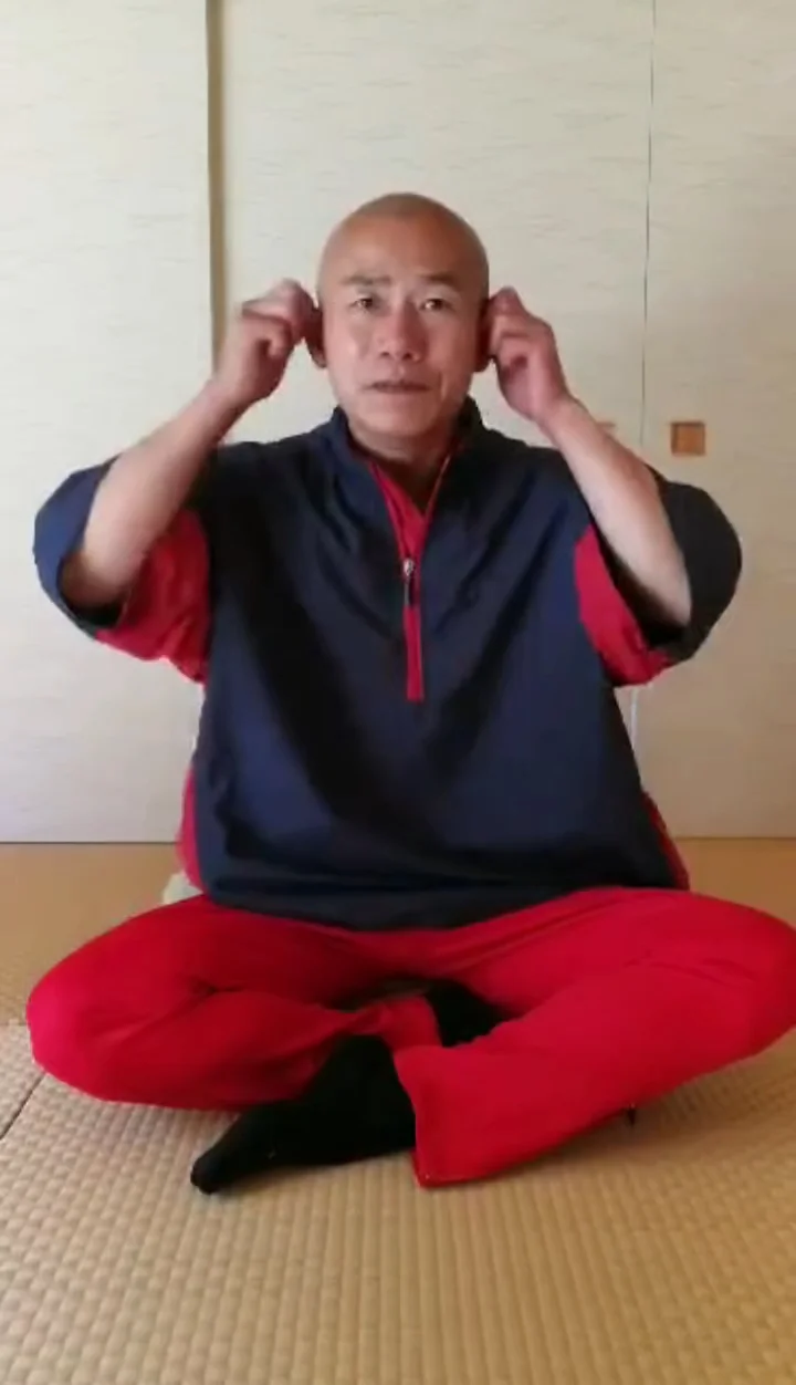 7.搓摩全耳,用空心拳第二指关节来回搓摩全耳