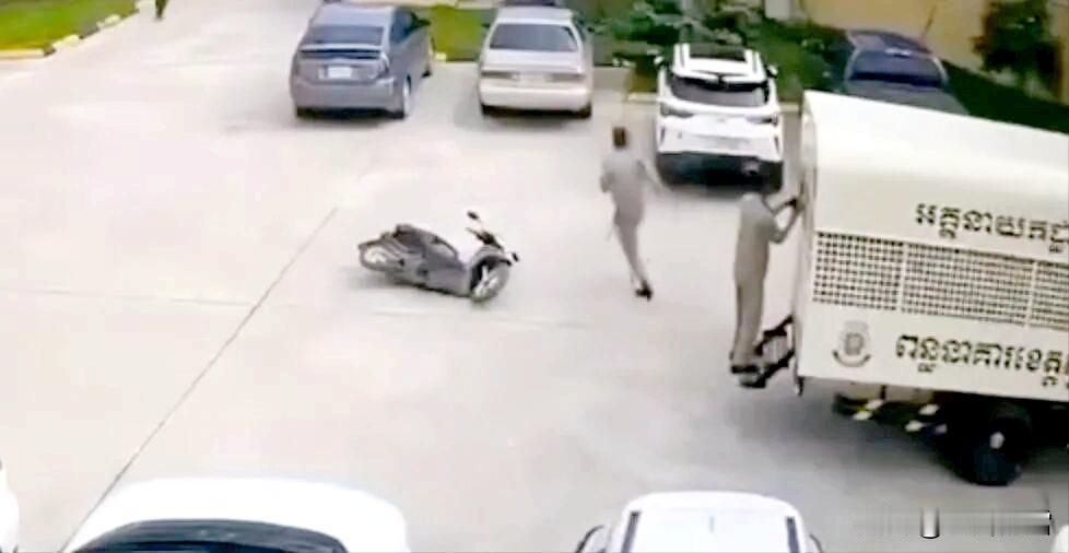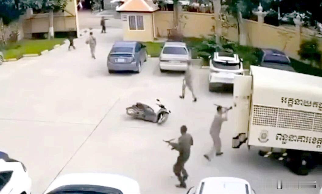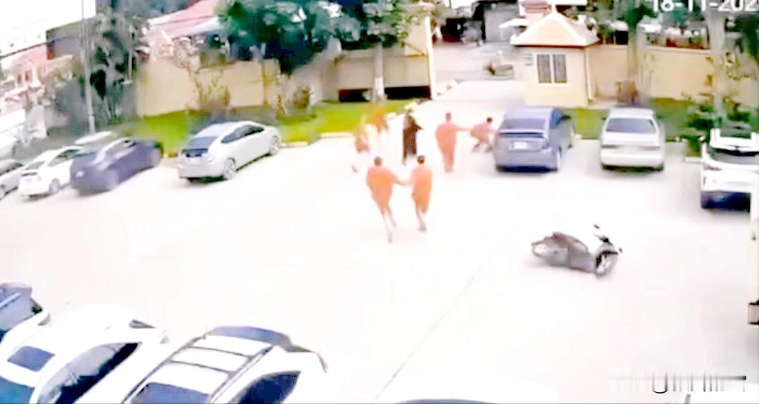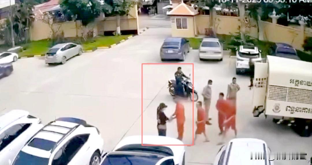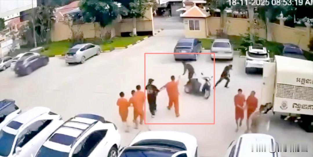 据柬媒消息,11月18日上午,柴桢省初级法院发生一起劫狱事件,6名越南籍囚犯在被押送进入法庭的途中,成功逃脱。 这6人都是今年初被抓进去的,涉及罪名包括赌博、毒品、非法持枪等罪名。 据现场监控视频显示,事发前,一名身穿黑衣、戴鸭舌帽、背着包的女子驾驶摩托车进入法院后,一直在停车区徘徊等待。 当押解囚犯的车辆驶入后,该女子便迅速靠近,在一名身着囚服的男子下车后,便掏出藏好的短枪递给对方。 在旁边的警员试图阻止时,该男子接过枪后立即对着押解警员开枪,旁边的警员听见枪响便四处逃窜,有的甚至吓的连滚带爬,站都站不起来了。 这些人则趁乱逃走,甚至还有囚犯趁机再对一名吓坏的警员动手,开枪的囚犯则牵着女子的手和另外5名身着囚服的同伙一起冲出法院大门,并登上一辆汽车逃离现场。 从监控的后半段来看,劫狱的囚犯跑了之后,囚车后面的门是开着的,这时,有一个警员便立即跑过去拿警棍把里面蠢蠢欲动的其他囚犯赶回去,锁上了囚车的门,防止了更多的囚犯趁乱逃跑。 事发后,警方便全力追击涉案犯罪团伙,并已抓回了一名嫌犯,同时查获了犯罪团伙逃离时,使用的车辆。 据了解,这伙人在潜逃过程中,车子冲出路面,陷入一处水洼,最终有一人被警方当场摁住。 对于此次的劫狱事件,也有网友提出了疑问: 囚犯被押解下来时为什么没有戴手铐? 押解囚犯的法庭里,一名并非工作人员的女子,长期滞留在囚犯下车的关键地方,为何没有人拦截阻止? 还有为什么她可以轻易的将手枪带进法院?并且囚犯下车后,现场的防控也是很松懈。