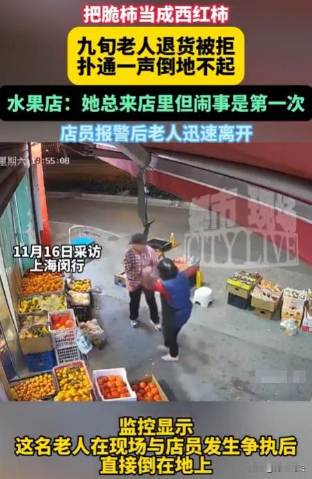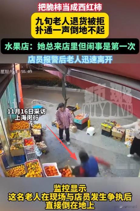 上海,一家水果店来了个90多岁的老太,晃晃悠悠挑了几个脆柿付钱走了。晚上,她又来了,还拿着几个西红柿,非说质量差要退钱。店员懵了,忙解释店里只卖水果,不卖蔬菜,不能拿西红柿退,老太没反应过来,一下就急了。店员想着老人不易,打算吃点亏给点钱,可老太情绪失控,在门口大骂,还冲上去抓踢店员,店员后退,老太没站稳摔倒,哭喊着说浑身痛,店员报了警,老太见状爬起来走了。 11月15号下午,一位90多岁的老太晃晃悠悠进店后,挑了几个脆柿付钱后离开。 晚上,老太又来到水果店,手里拿着几个西红柿,情绪激动地嚷着要退钱,说质量差。 店员一下子懵了,赶忙解释店里只卖水果,不卖蔬菜,这西红柿根本不是店里卖的,没法给她退。 老太似乎没反应过来,一听不能退,情绪瞬间失控。 她站在店门口,扯着嗓子大骂起来,那声音引得周围人都纷纷侧目,骂着骂着,老太竟冲上去,对着店员又抓又踢。 店员下意识往后退,想躲开老太的攻击。 可意外就在这时发生了,老太没站稳,一下子摔倒在地,接着就哭喊起来,说自己浑身痛。 这场景让店员也慌了神,赶紧报了警。 老太看到有人报了警,不知是害怕还是怎么回事,竟爬起来匆匆走了。 老太年纪大了,可能有些糊涂,把别处买的西红柿拿到水果店来退,这行为确实让人无奈。 但话说回来,年纪大就能成为闹事的理由吗? 有人觉得老人年纪大了,应该多包容。 可包容也得有个度,动手闹事这种行为,不管是谁都不应该被允许。 老人要是遇到问题,完全可以通过好好沟通来解决,而不是一上来就又抓又踢,这既伤害了别人,也让自己陷入尴尬境地。 其实,店家处理得挺合理。 面对老太不合理退货要求,明确拒绝,这是维护自身权益。 在老太摔倒后,第一时间报了警。 要是店家当时因为老太年纪大就妥协,给老太退了西红柿的钱,以后会不会有更多类似不合理要求出现呢? 老太拿西红柿去水果店退货退款,这请求根本不合理。 据《消费者权益保护法》规定,只有经营者提供的商品或服务不符合质量要求,消费者才能要求退货退款。 这西红柿不是水果店卖的,店家自然没有退货义务。 要是老太买的脆柿有问题,那她提出退货退款是合理的,可她没对脆柿提意见,拿非购买商品来退货,店家拒绝完全在情理之中。 老太因为店家拒绝退货,情绪激动,在店门口大骂,还冲上去抓踢店员,这已经超出了正常维权的范围。 从法律上说,这属于侵犯他人人身权利的行为。 根据《治安管理处罚法》规定,殴打他人的,或者故意伤害他人身体的,处五日以上十日以下拘留,并处二百元以上五百元以下罚款;情节较轻的,处五日以下拘留或者五百元以下罚款。 老太虽然年纪大了,但她的行为已经构成了对店员人身权利的侵犯。 不过考虑到老太的年龄因素,在具体处罚的时候,应会从轻或者减轻处罚,但这并不意味着她的行为就是合法的,不需要承担责任。 店员在老太冲过来抓踢的时候选择后退躲避,这是正常的自我保护行为。 老太自己没站稳摔倒,店家在老太摔倒后及时报了警,处理方式比较谨慎合理。 如果老太因此受伤,要求店家赔偿,这合理吗? 根据《民法典》规定,行为人因过错侵害他人民事权益造成损害的,应当承担侵权责任。 店员没有过错行为,是在正常躲避老太的攻击,老太摔倒是因为自己没站稳,店家不需要承担赔偿责任。 最终,店家报了警后,由于老太自行离开,没有进一步追究责任。但从法律角度分析,老太的行为存在多处不合理、违法的地方。 虽然老人行动不便、思维不清晰,但也不能因为他们是老人,就无原则地迁就,否则只会助长一些不良行为。 遇到这种老人闹事,既要保障自身权益,又要避免矛盾激化,这确实不容易。在遇到类似情况时,有没有更好的处理办法呢? 大家觉得在面对老人不合理要求时,到底该怎么做才合适呢?