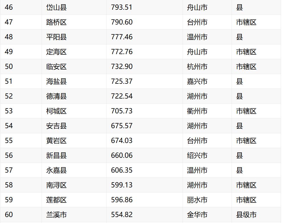 2024年浙江省90个县市区GDP悬殊差距越来越大 浙江省是全国首个共同富裕示范