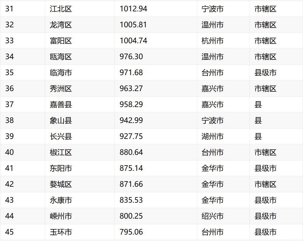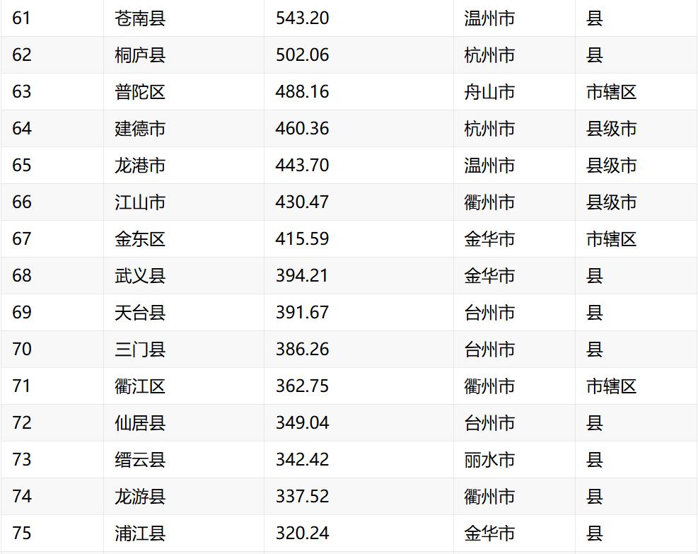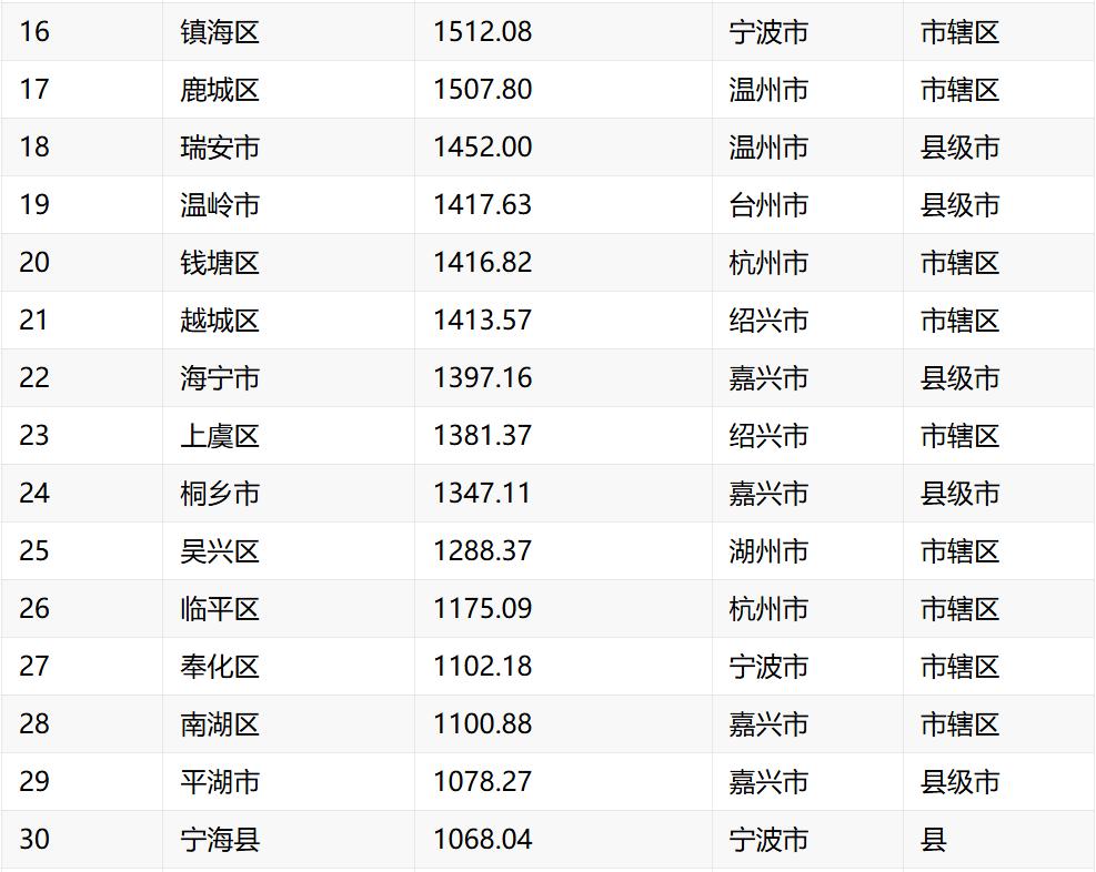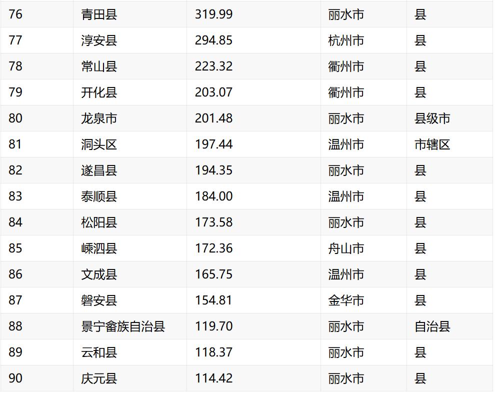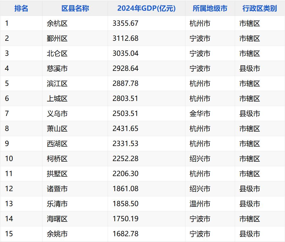 2024年浙江省90个县市区GDP悬殊差距越来越大 浙江省是全国首个共同富裕示范区,也是唯一实现全民小康的省份,城乡二元经济差距小,市主城区与县市差距不大,甚至很多地级市下面的县及县级市GDP比市辖区还要高。 截止2024年,浙江省县市区共90个,其中市辖区37个,县级市33个,县20个。 根据2024年浙江省90个县市区GDP数据来看,最高GDP为 3355.67 亿元(余杭区), 最低GDP为 114.42 亿元(庆元县), 平均GDP为 998.60 亿元,GDP中位数为 794.28 亿元。有如下几个特点: 一是排名前十中杭州、宁波唱双城戏。排名前十中,杭州占了5席,宁波占了3席,金华的义乌及绍兴的柯桥各占一席,杭州的余杭区以3355.67亿元独占榜首,宁波的鄞州、北仑、慈溪分列二、三四,实力相当。 二是排名第一与排名倒数第一相关悬殊大。排名第一的是杭州余杭区GDP3355.67亿元,排名倒数第一的是丽水庆元县GDP114.42亿元,整整相差3241.25亿元,差不多是29倍。 三是温州、嘉兴、台州等地的县级市比市辖区经济普遍要好。温州乐清、瑞安,台州温岭、临海,嘉兴海宁、桐乡等,县级市的GDP比市辖区都要高,藏富于民,也是制造业的工业重县。 四是绍兴GDP高还是有他存在的道理和逻辑。绍兴的人口少、地理面积不大,但是绍兴的GDP却很强很坚挺,绍兴的柯桥、诸暨、越城、上虞等确实实力强,直接占绍兴总GDP的大部分了,有龙头区市在领头发展,除了区位优势外,绍兴的纺织制造是主力。 五是浙江三大梯队更加稳定。杭州、宁波是第一梯队,温州、绍兴、嘉兴、金华、台州是第二梯队,湖州、衢州、舟山、丽水体量规模还是处于第三梯队。第三梯队与浙江省第一梯队和第二梯队的差距明显,体量规模被远远甩在后面。除了地理位置外,主要还是人口规模、产业劣势等。浙江如果要缩小与广东、江苏、山东的差距,这几个地方要发力。 六是丽水还是一如继往地发展缓慢。丽水最好的是莲都区596.86亿元排名59,其它8个县市排名在倒数,绿水青山就是金山银山,绿色GDP可能是优势,怎么样发展绿色GDP经济值得去摸索。浙江gdp 共同富裕看浙里 城市经济实力 山东浙江GDP 浙江各市gdp 浙江经济 浙江GDP 浙江城市排行 浙江GDP增速 浙江山东gdp